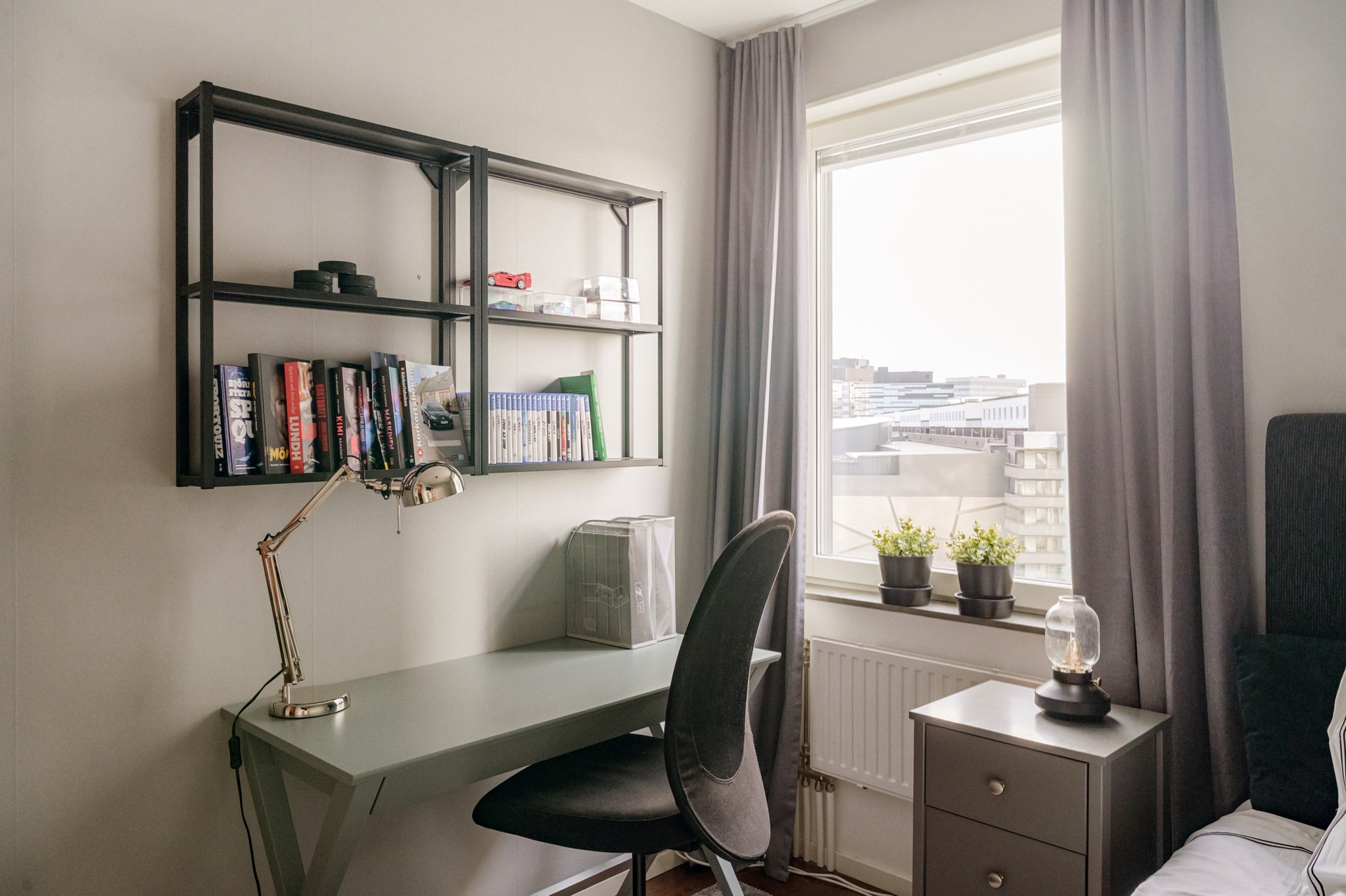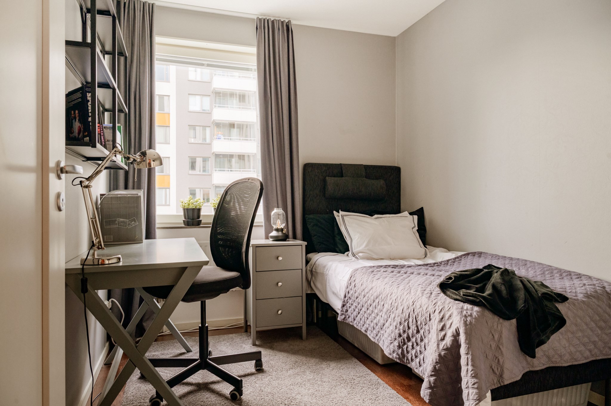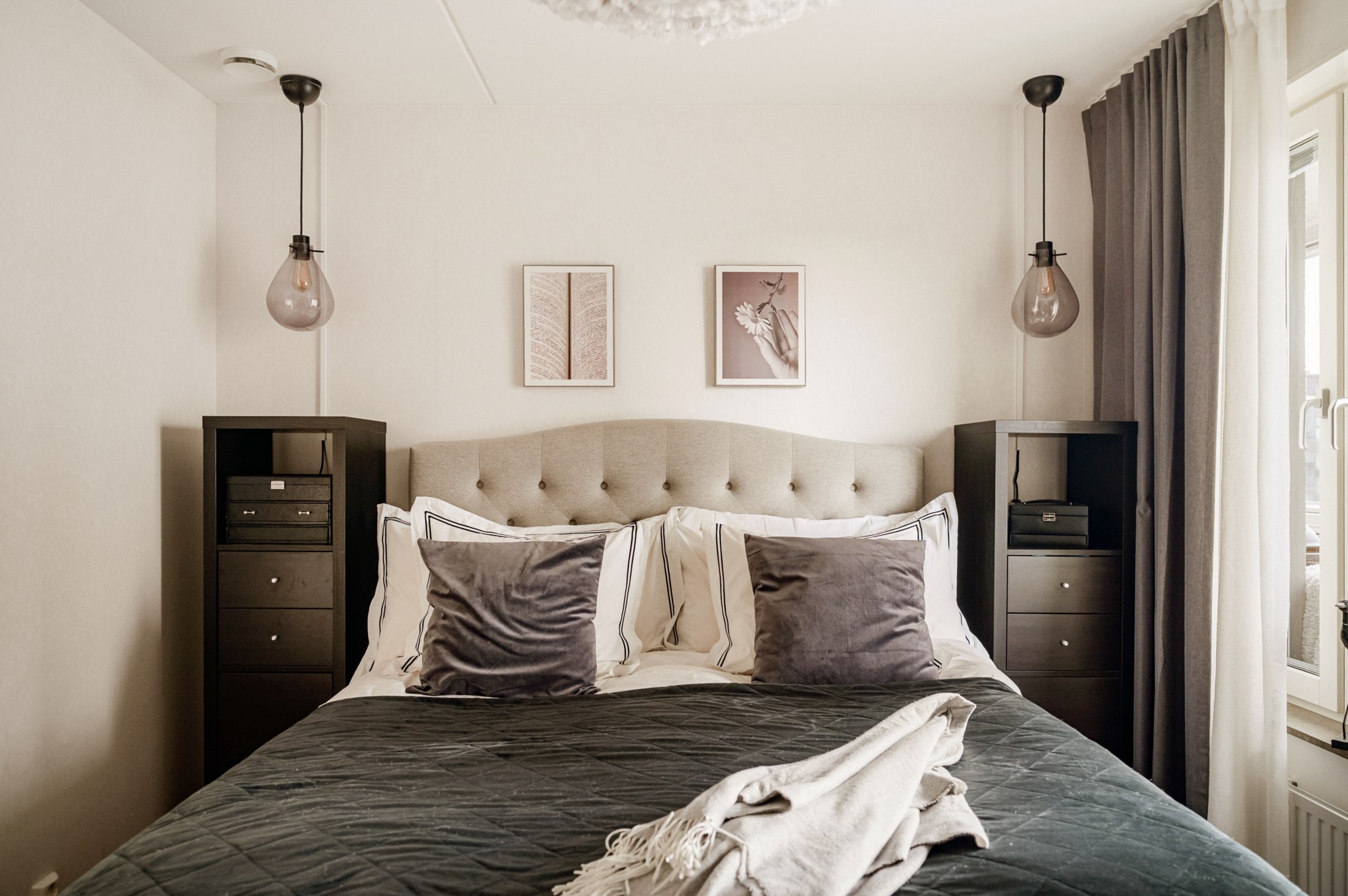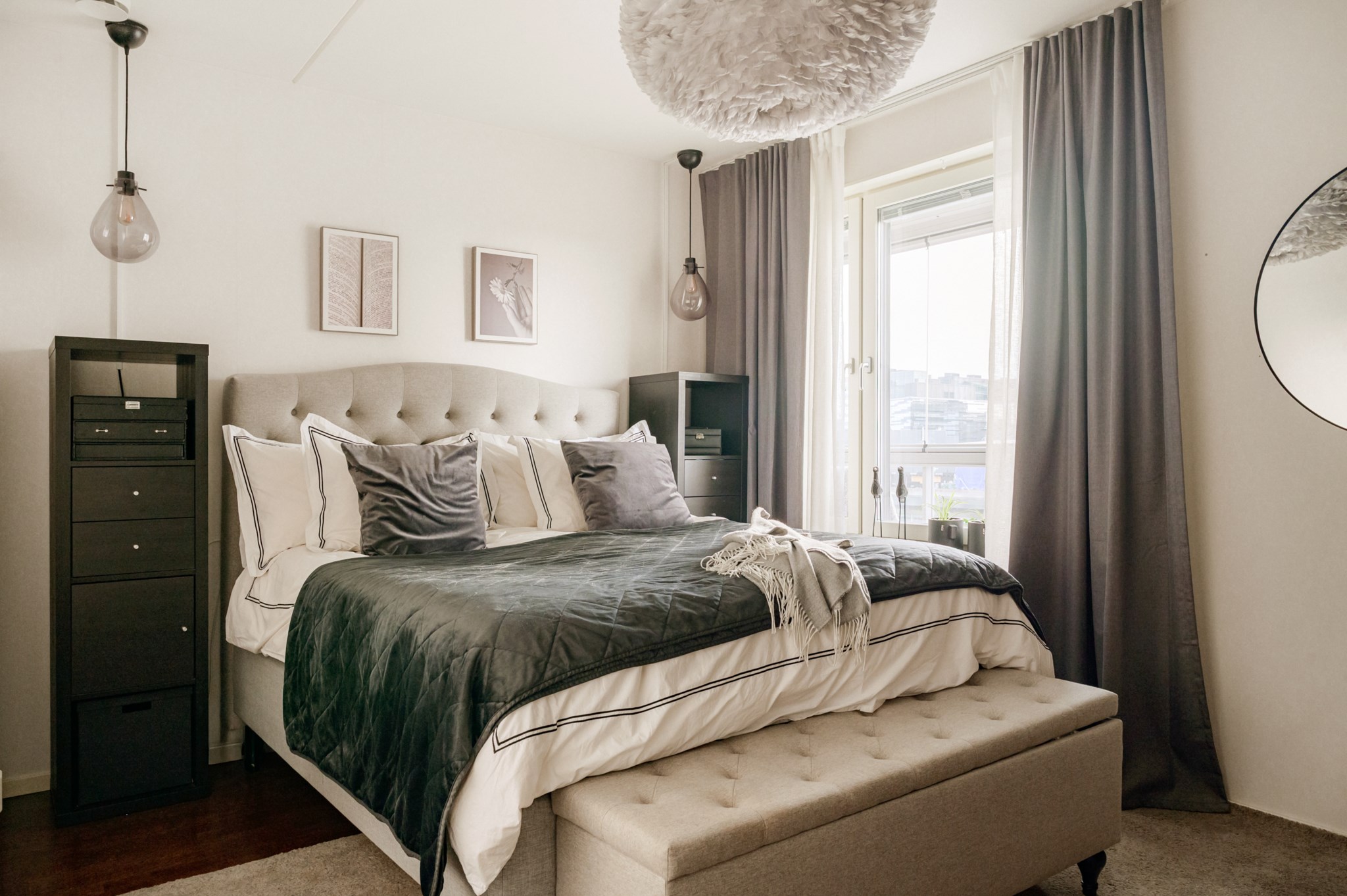 Bostaden har två välplanerade sovrum där det större lämpar sig perfekt som master bedroom och det andra som gästrum, barnrum eller hemmakontor. Det helkaklade badrummet är elegant utformat med moderna material och utrustat med både tvättmaskin och torktumlare för hög vardagskomfort.