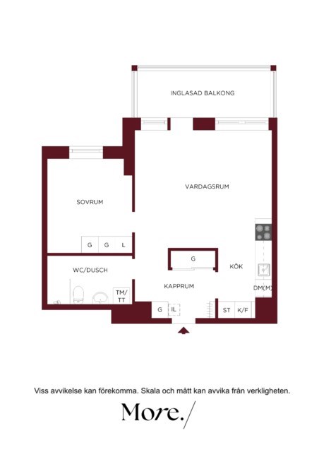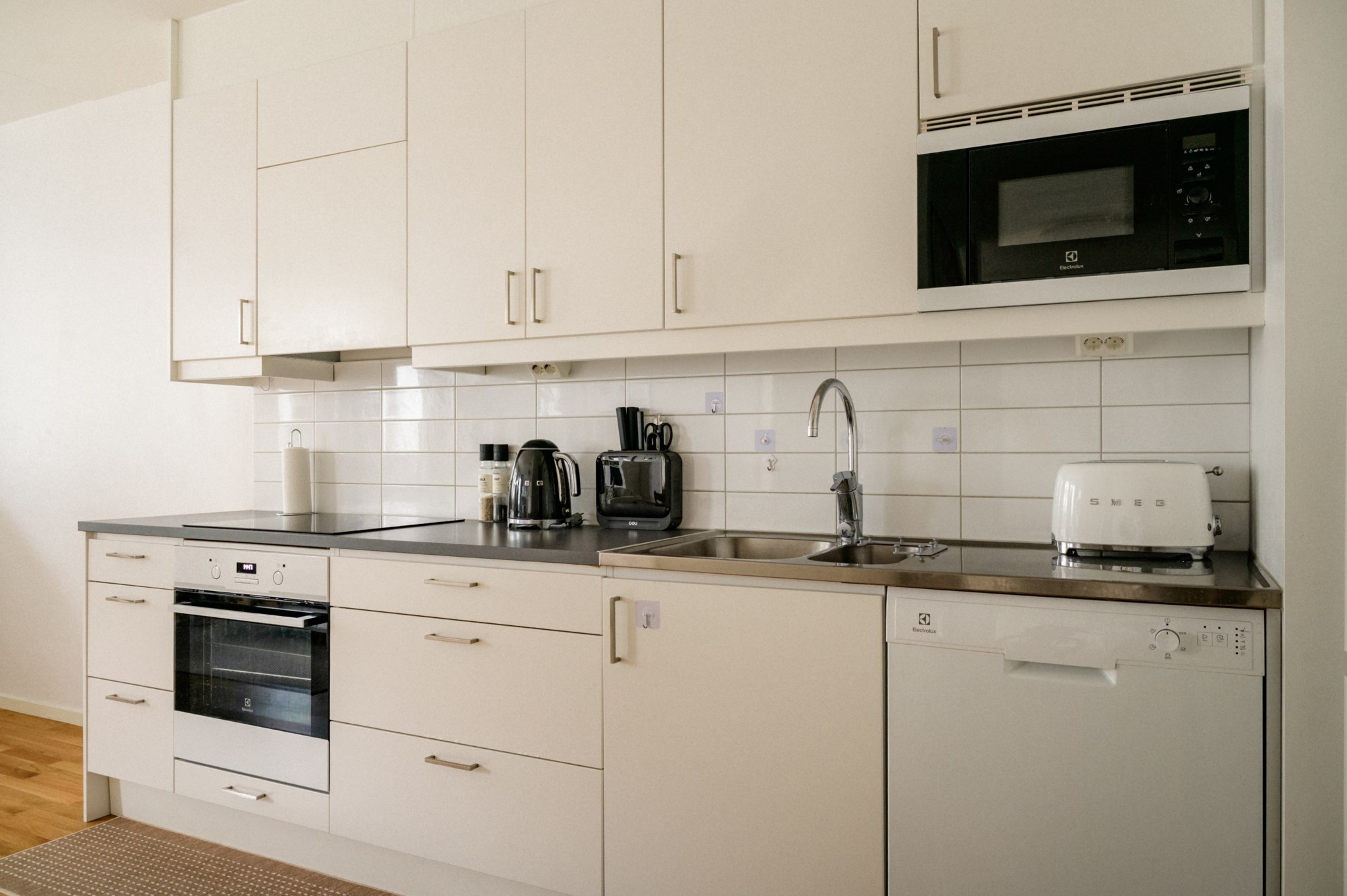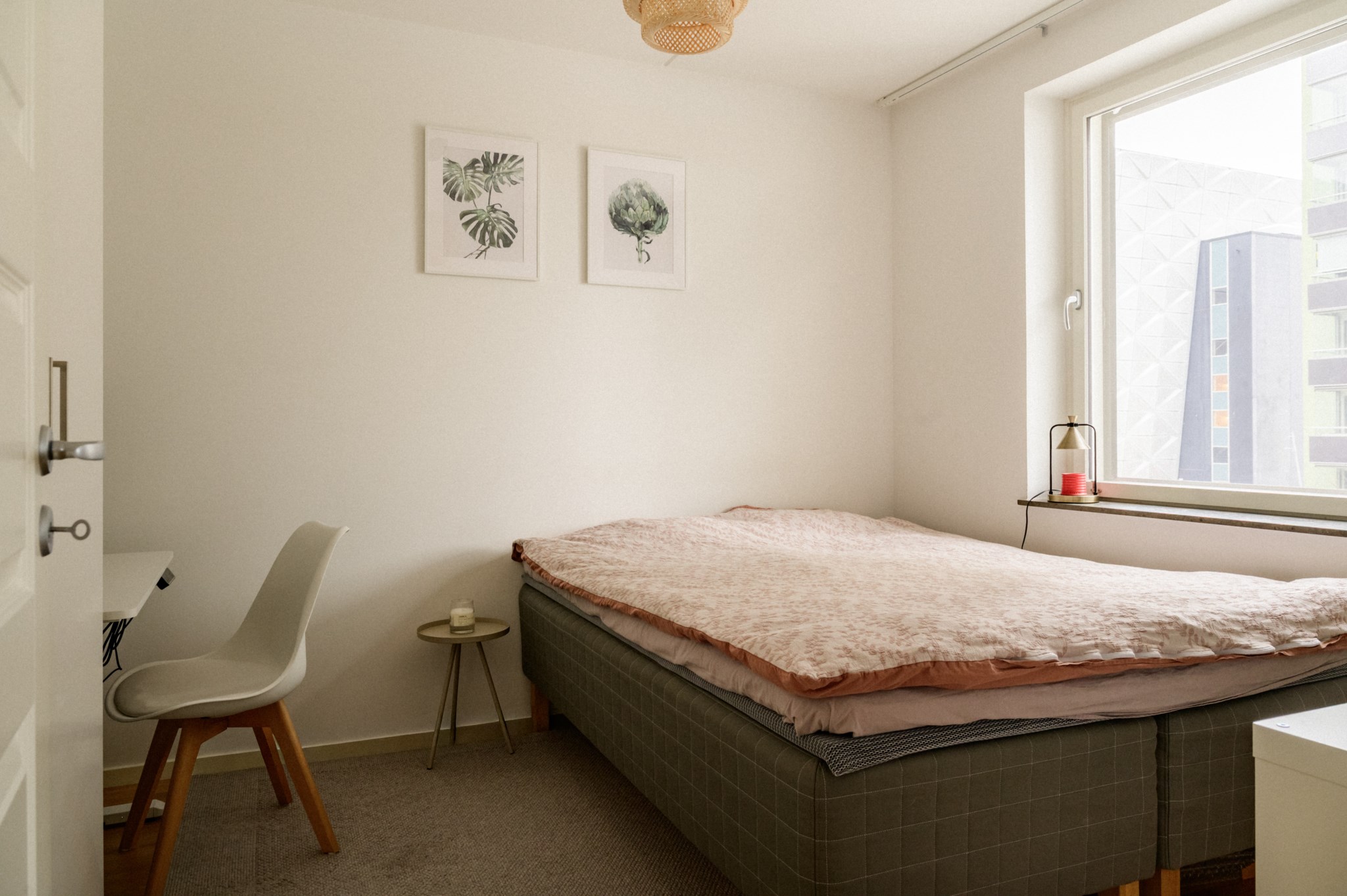 Planlösningen är genomtänkt med sociala ytor där kök och vardagsrum möts i en öppen och elegant helhet. Köket är modernt och fullt utrustat med goda arbetsytor och förvaring, perfekt för både vardagsmatlagning och middagar med vänner. Vardagsrummet rymmer enkelt både soffgrupp och matplats utan att kompromissa med luftig känsla. Sovrummet är rofyllt och väl tilltaget med plats för dubbelsäng, förvaring och arbetsyta, vilket gör bostaden idealisk även för dig som arbetar hemifrån. Badrummet håller en hög standard med stilrena ytskikt och bekvämligheter som förenklar vardagen.