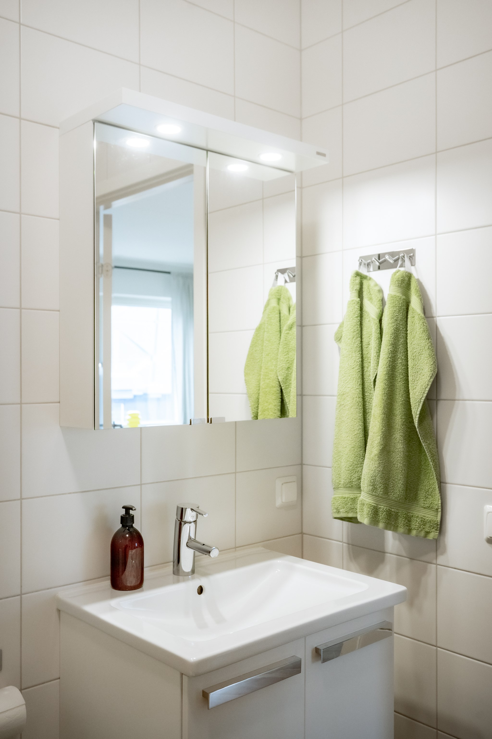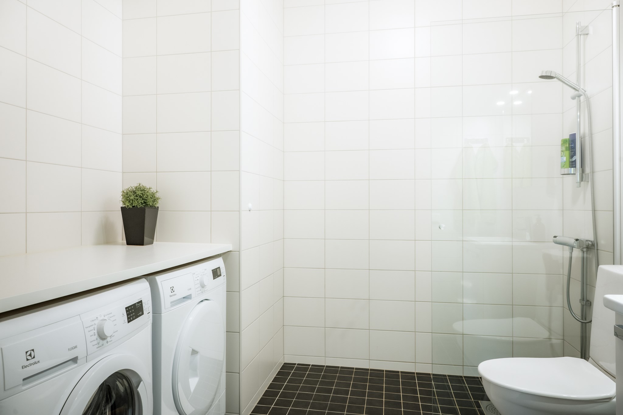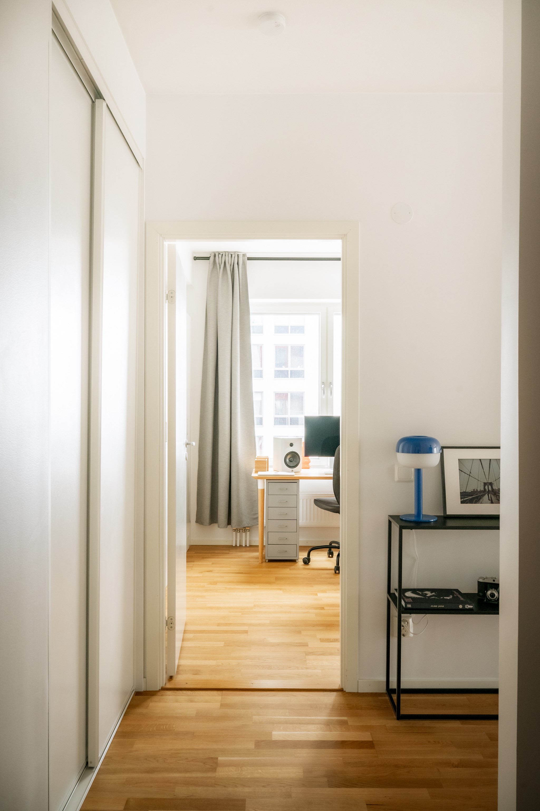 Sovrummet är rofyllt placerat och erbjuder gott om förvaring genom en garderobsvägg. Det helkaklade badrummet är modernt utrustat med tvättmaskin och torktumlare vilket ger en bekväm vardag. I hallen finns ytterligare förvaringsmöjligheter samt ett praktiskt förråd i lägenheten.