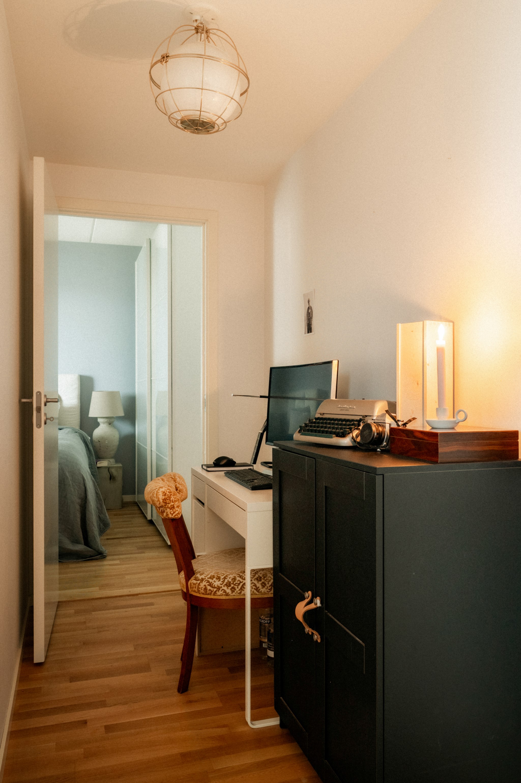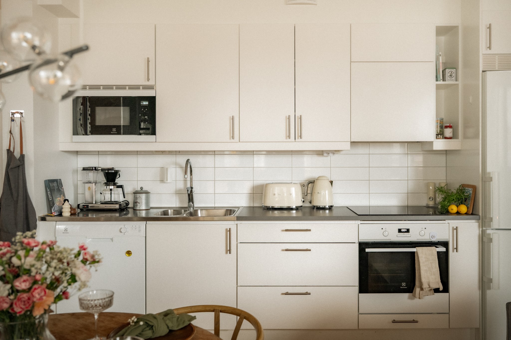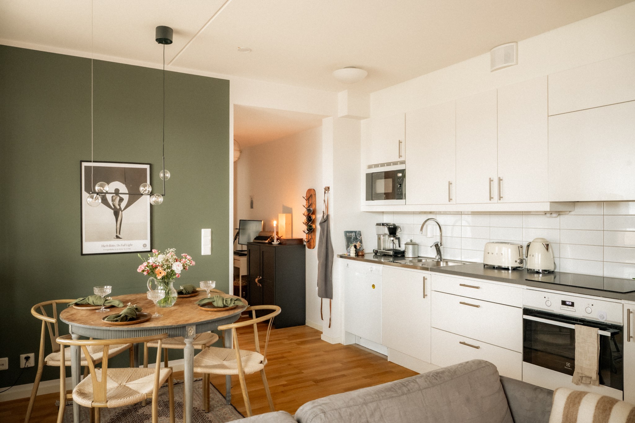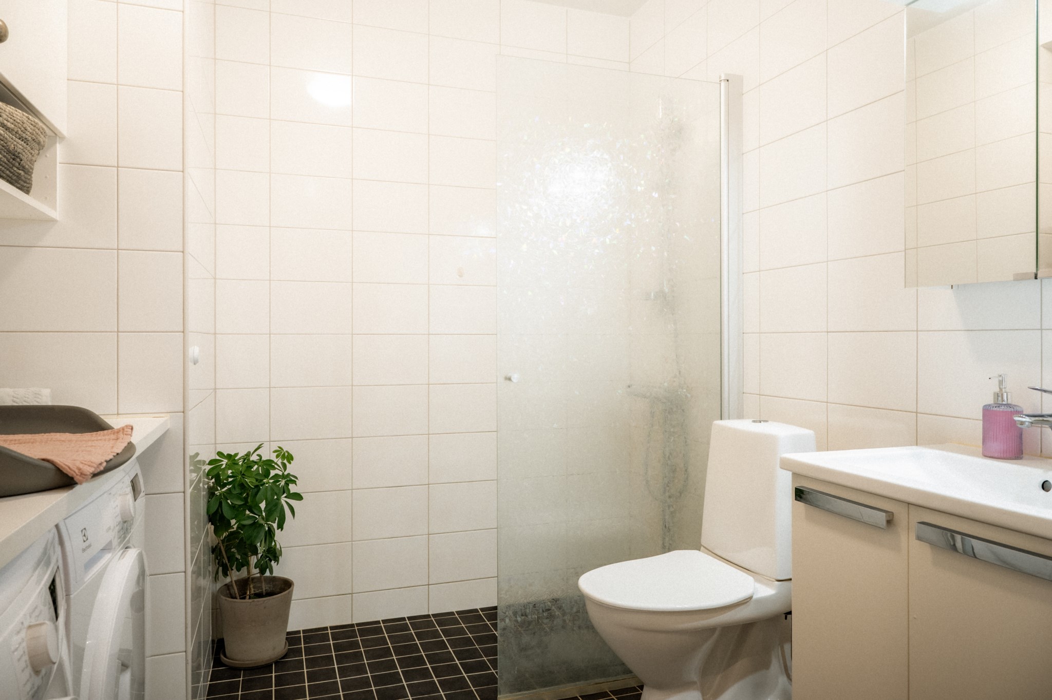 Interiört möts du av en ljus och inbjudande miljö där kök och vardagsrum samspelar i en öppen och social planlösning. De stora fönsterpartierna bidrar till ett fint ljusinsläpp och skapar en naturlig rymd i bostaden. Materialvalen är moderna och stilrena vilket gör hemmet lätt att trivas i och enkelt att anpassa efter egen smak. Bostaden disponeras med två sovrum som erbjuder flexibilitet för såväl barnrum som arbetsrum eller gästrum, vilket gör den attraktiv för både paret och den lilla familjen. Det helkaklade badrummet är funktionellt och utrustat med dusch, tvättmaskin och torktumlare samt goda förvaringsmöjligheter vilket underlättar vardagen.