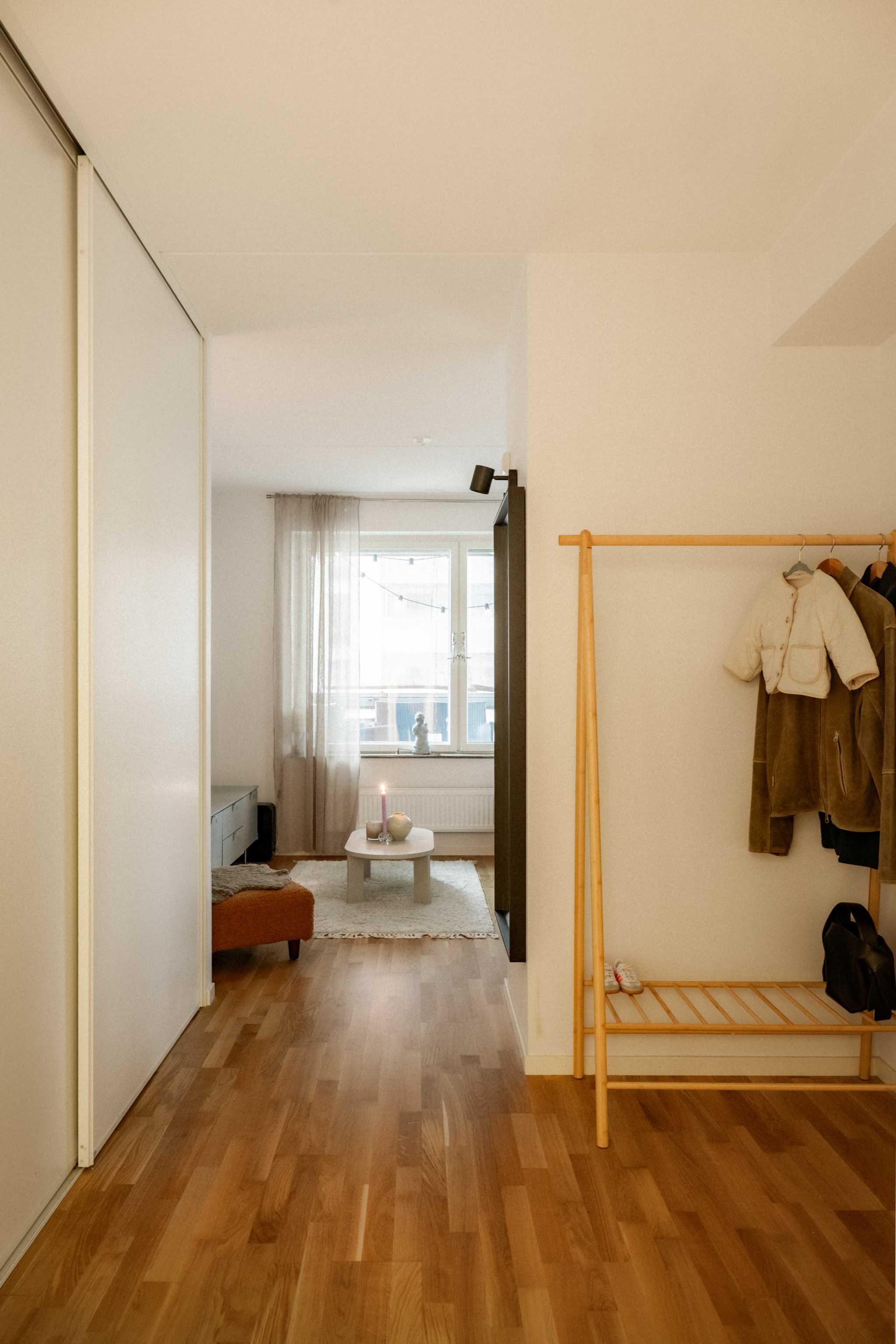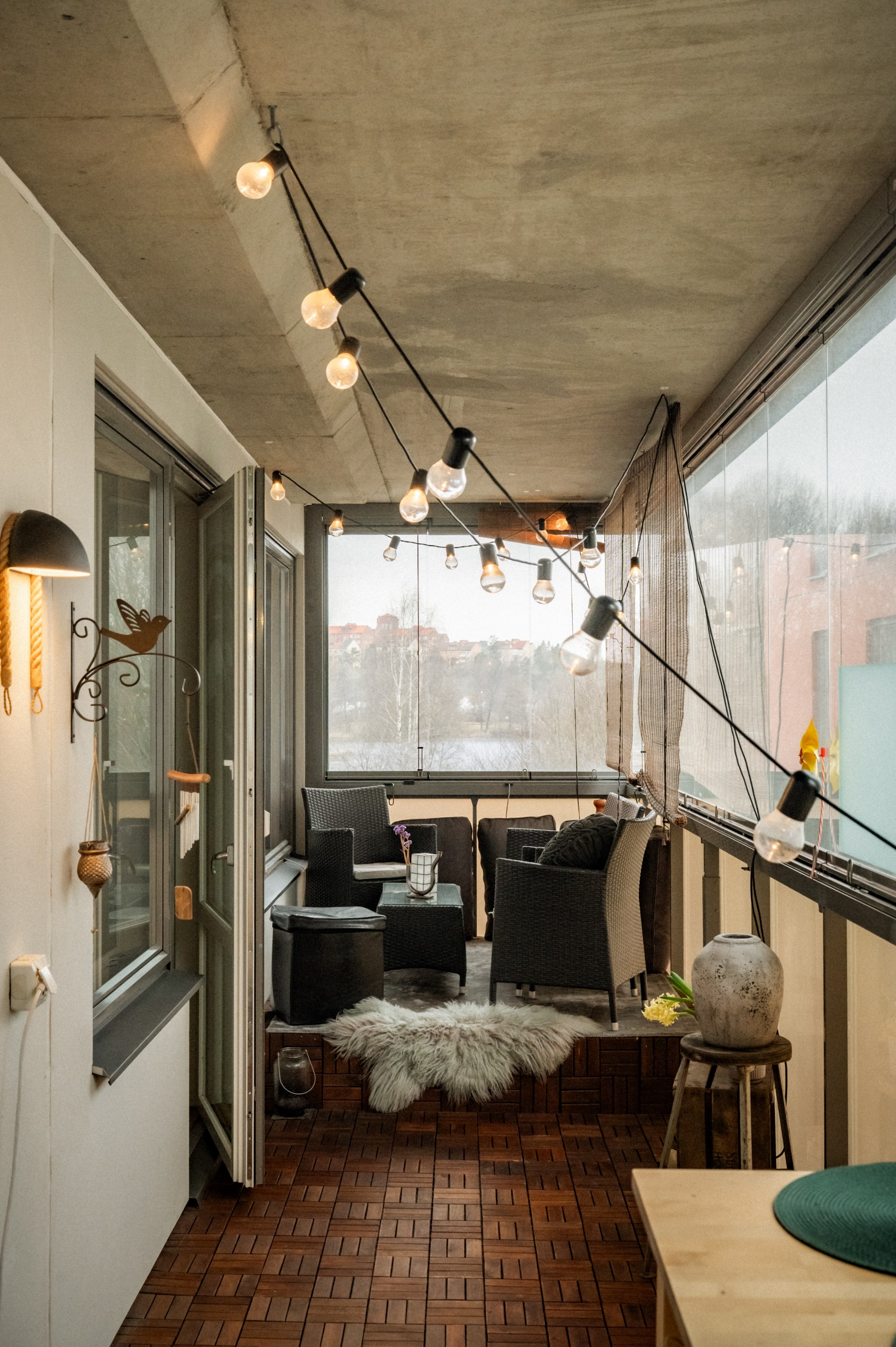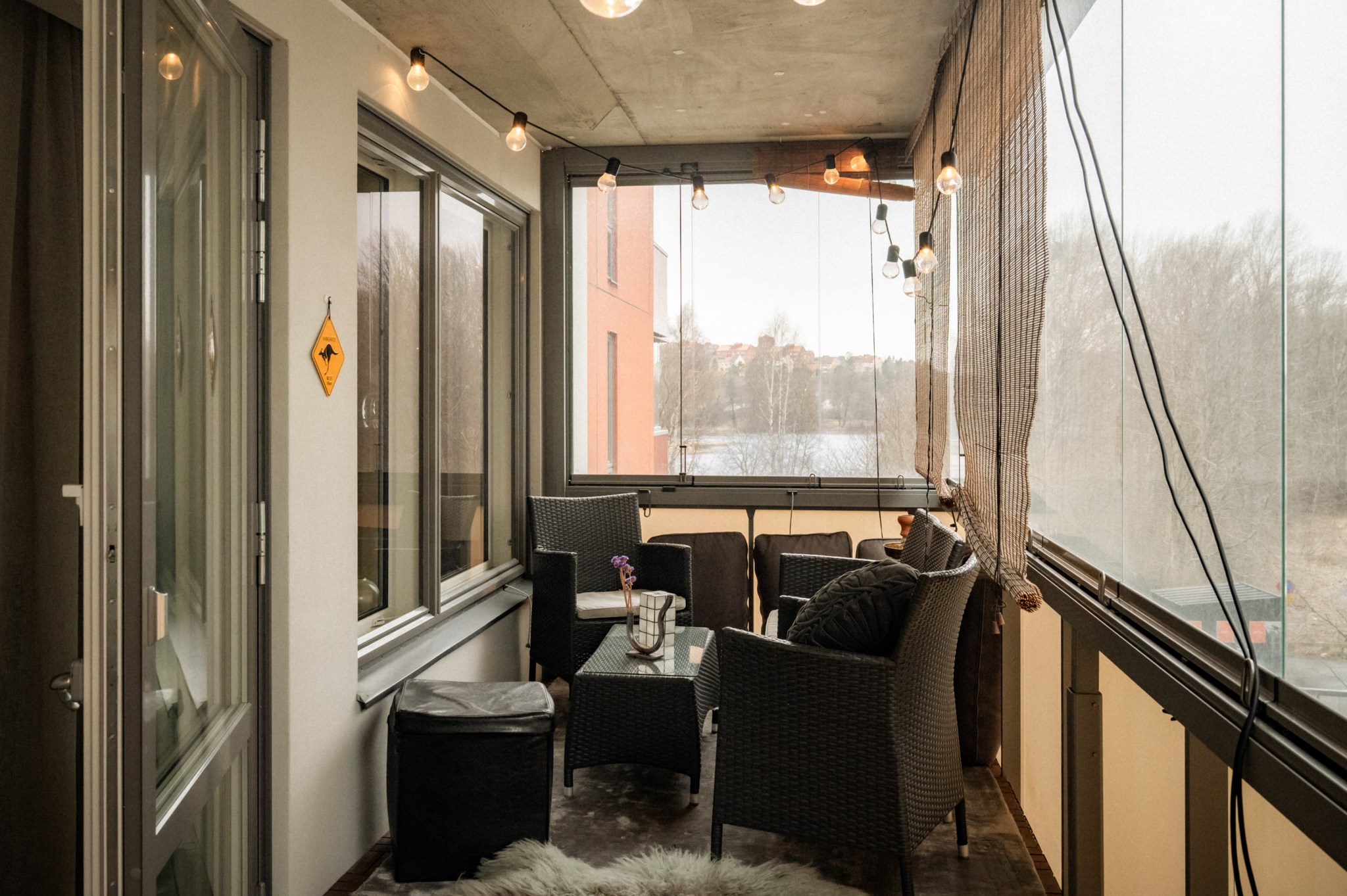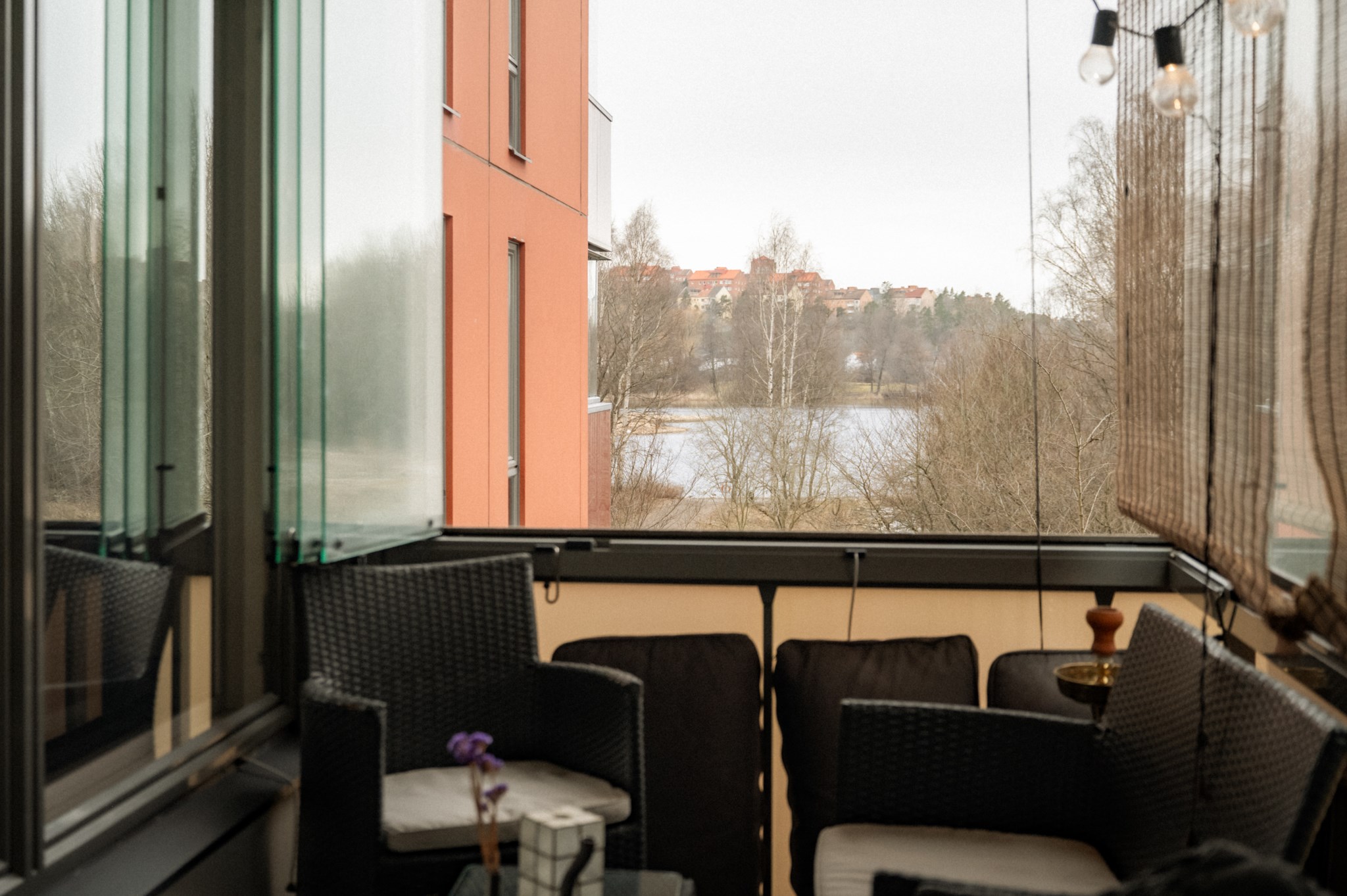 Den stora balkongen är bostadens självklara höjdpunkt och fungerar som ett extra vardagsrum under stora delar av året tack vare inglasningen. Här finns gott om plats för både loungemöbler och matplats, vilket skapar möjligheter för såväl avkoppling som sociala tillställningar. Utsikten mot grönska och vatten bidrar till en lugn och harmonisk känsla samtidigt som du befinner dig mitt i ett av Stockholms mest levande områden. Kombinationen av storlek, läge och användbarhet gör balkongen till en unik tillgång som få bostäder i Arenastaden kan erbjuda.