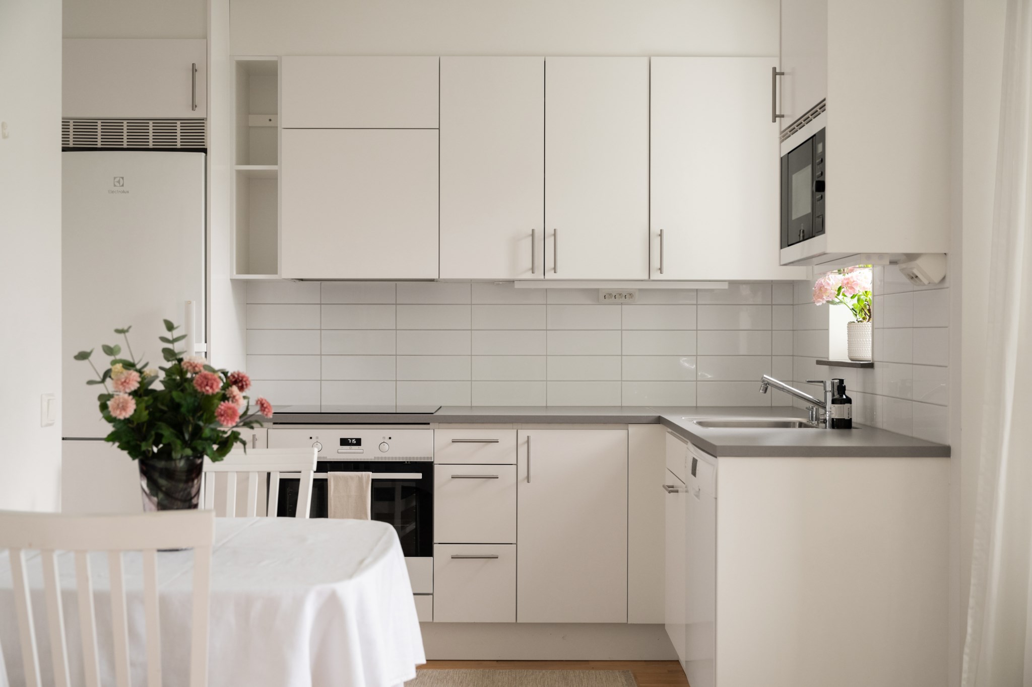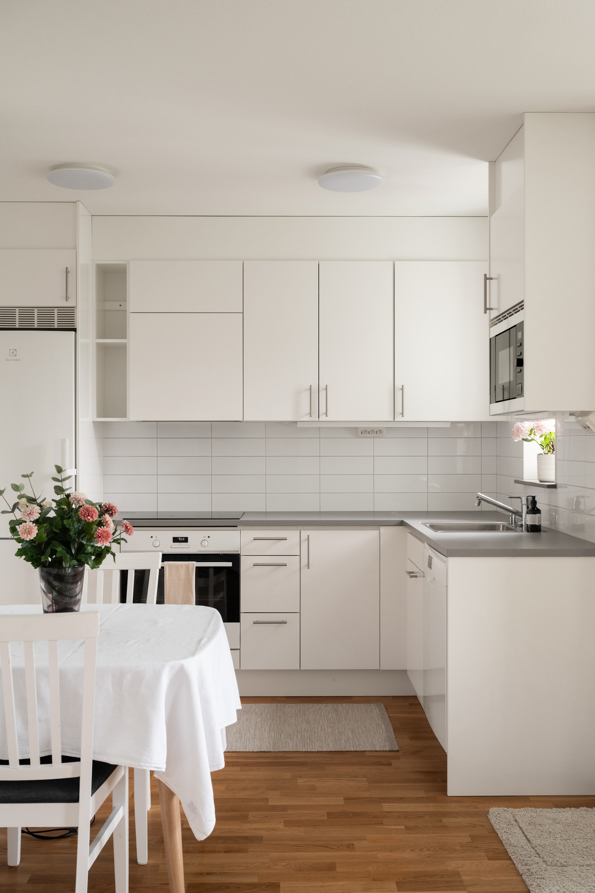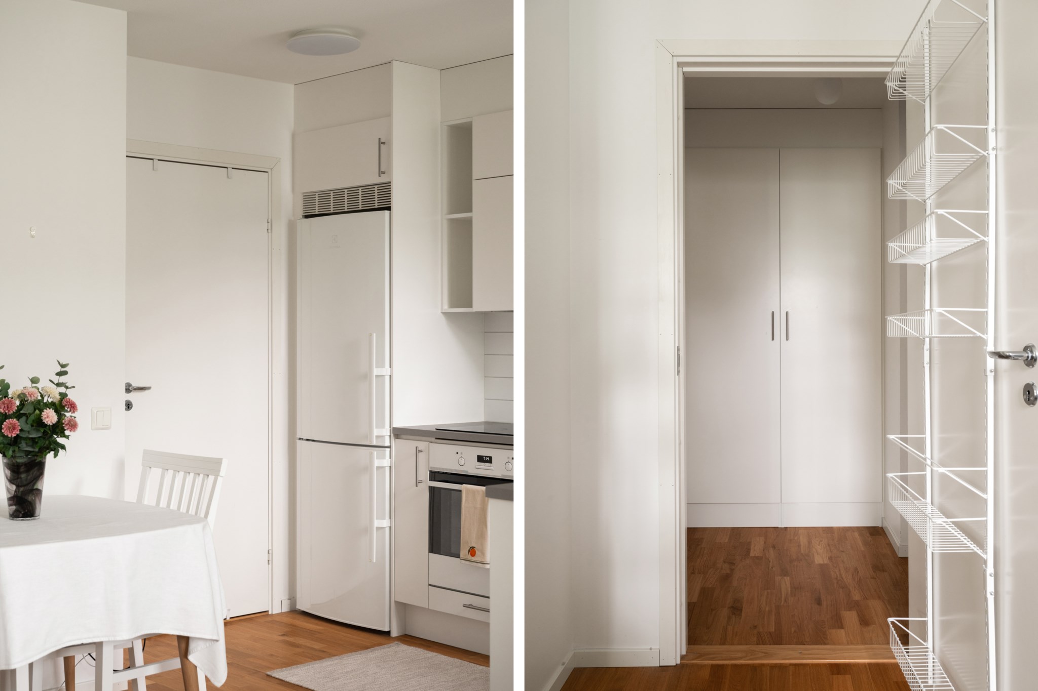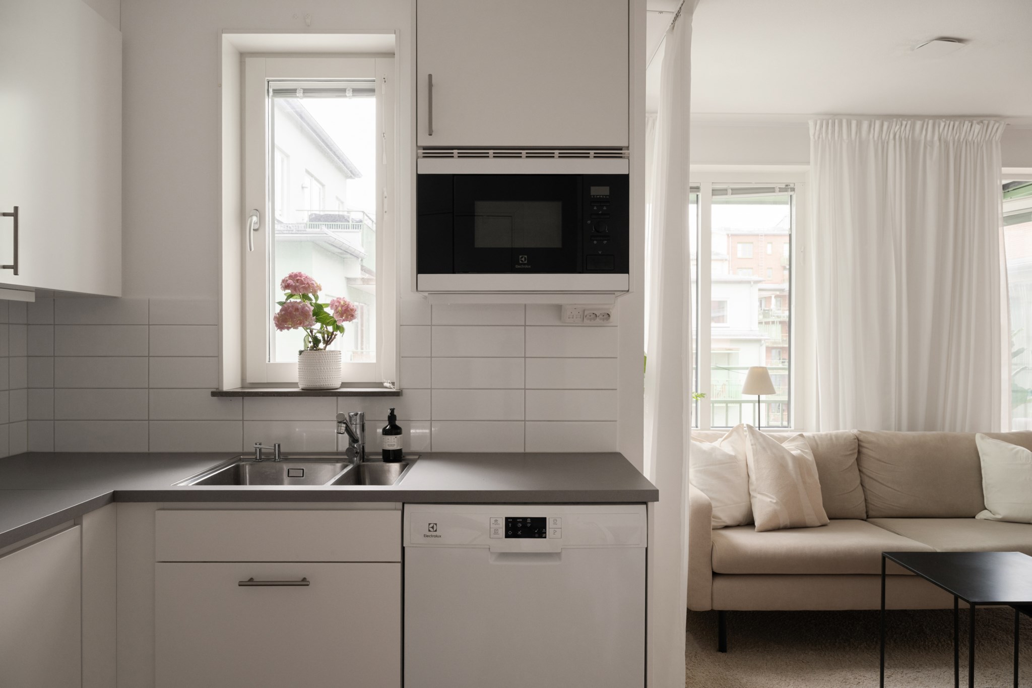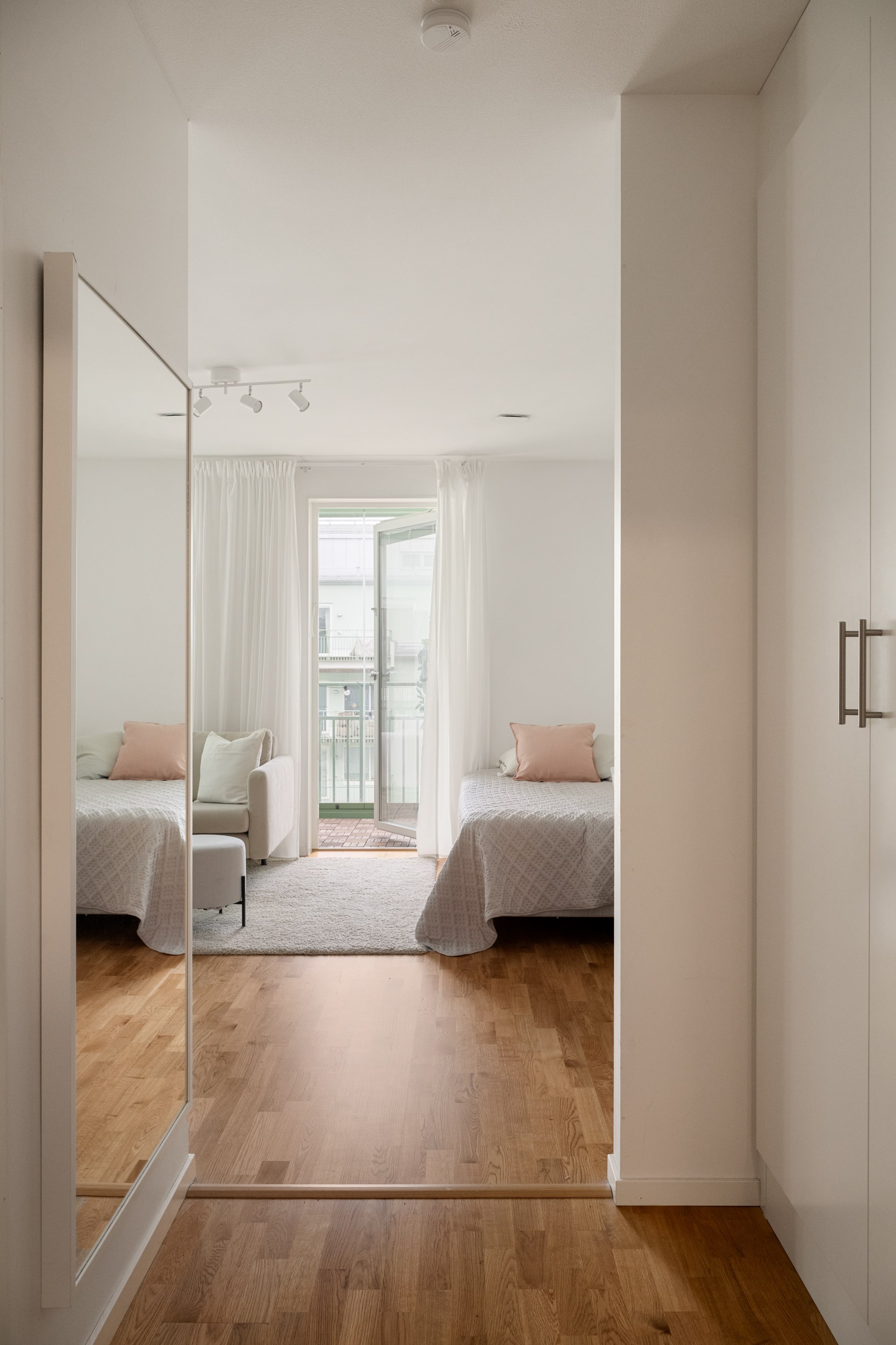 Bostaden präglas av genomgående gott skick med fint parkettgolv, målade väggar samt ett stilrent och fullutrustat kök i delvis öppen planlösning mot det luftiga allrummet. Här finns plats för matbord, soffgrupp och sovdel. Stora fönsterpartier ger ett generöst ljusinsläpp. Vidare erbjuds ett badrum med separat tvättmaskin och torktumlare, goda förvaringsmöjligheter och väl tilltagna ytor.