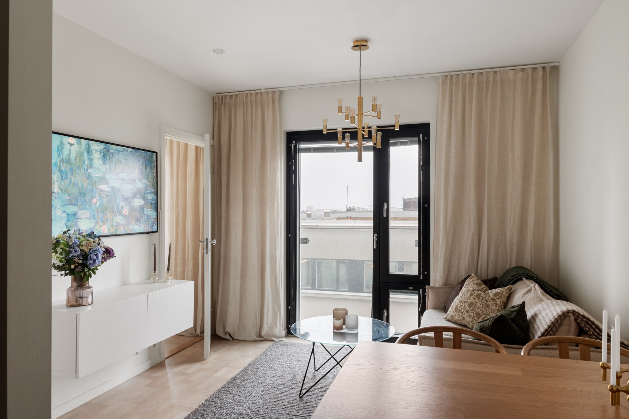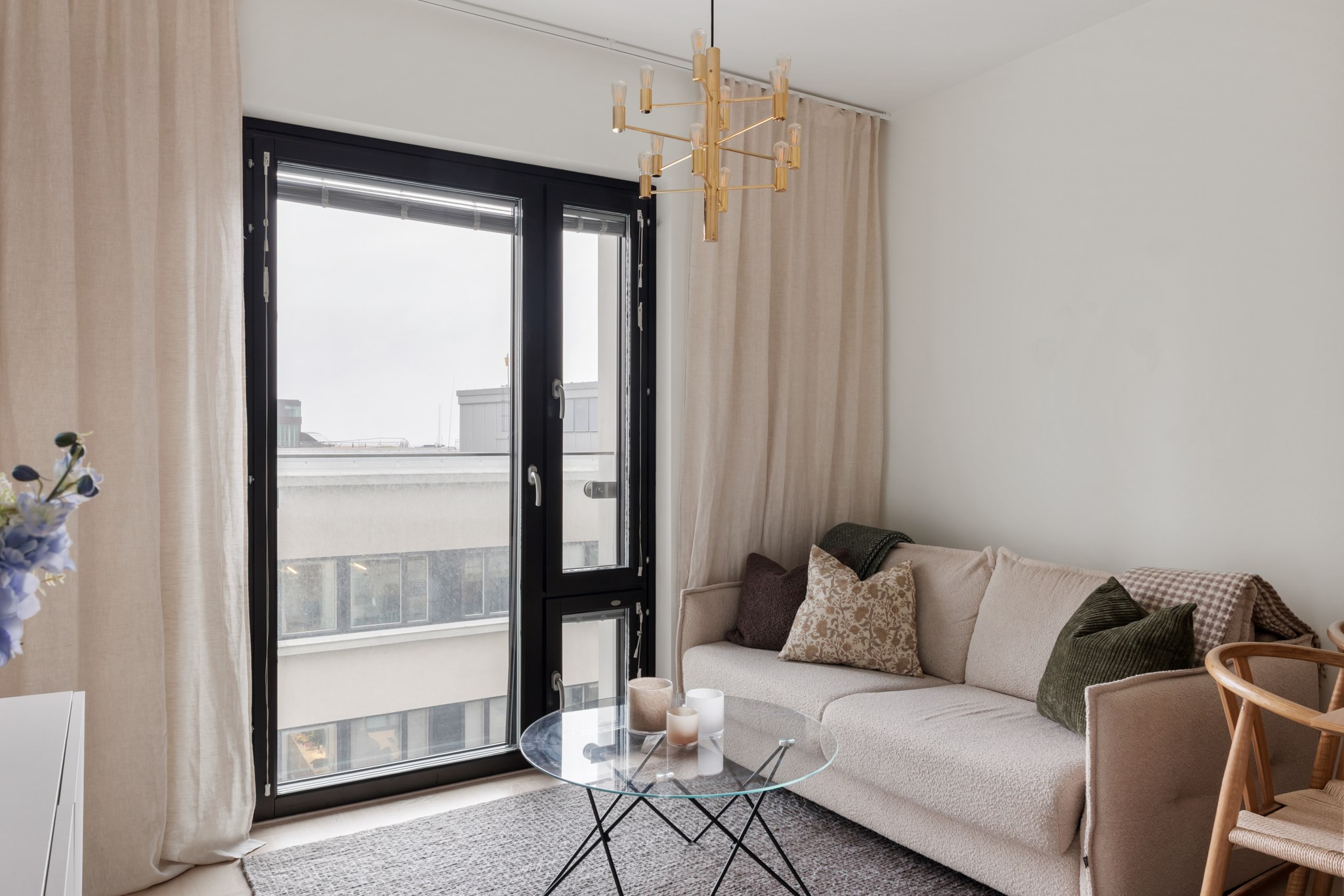 På elfte våningen i hjärtat av Hagastaden ligger denna eleganta tvårummare om 34 kvadratmeter. Här möts modern design, noggrant utvalda material och en fantastisk utsikt över stadens takåsar. Bostaden är uppförd av Einar Mattsson, kända för att skapa byggnader med tidlös arkitektur och hög kvalitet.