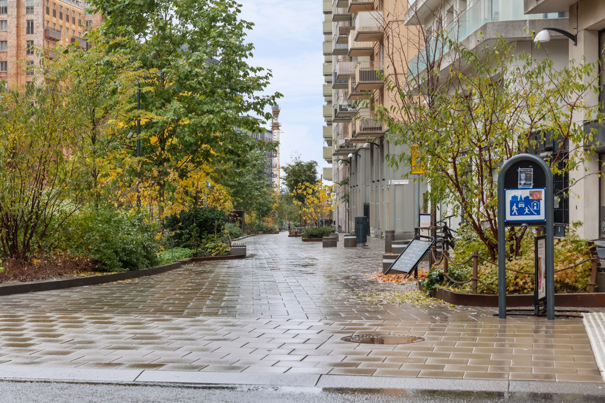 Direkt utanför porten möts du av Norra Stationsparken, en grön och livfull park med gångstråk, lekplatser och konstinstallationer. Området präglas av samtida arkitektur, hög livskvalitet och ett växande utbud av restauranger, caféer och service.