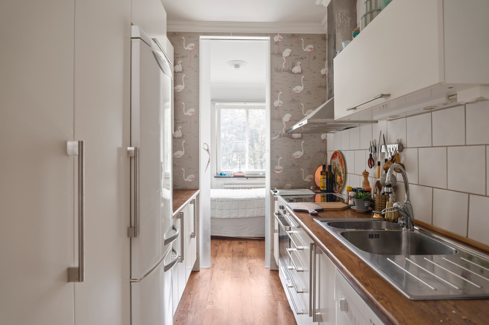 Köket är arbetsvänligt och välutrustat för dig som gillar att laga mat. Här finns kyl/frys, diskmaskin, ny spis med ugn, samt en rostfri fläktkåpa. Sovrummet är rogivande med ett stort fönsterparti mot föreningens lugna och grönskande innergård.