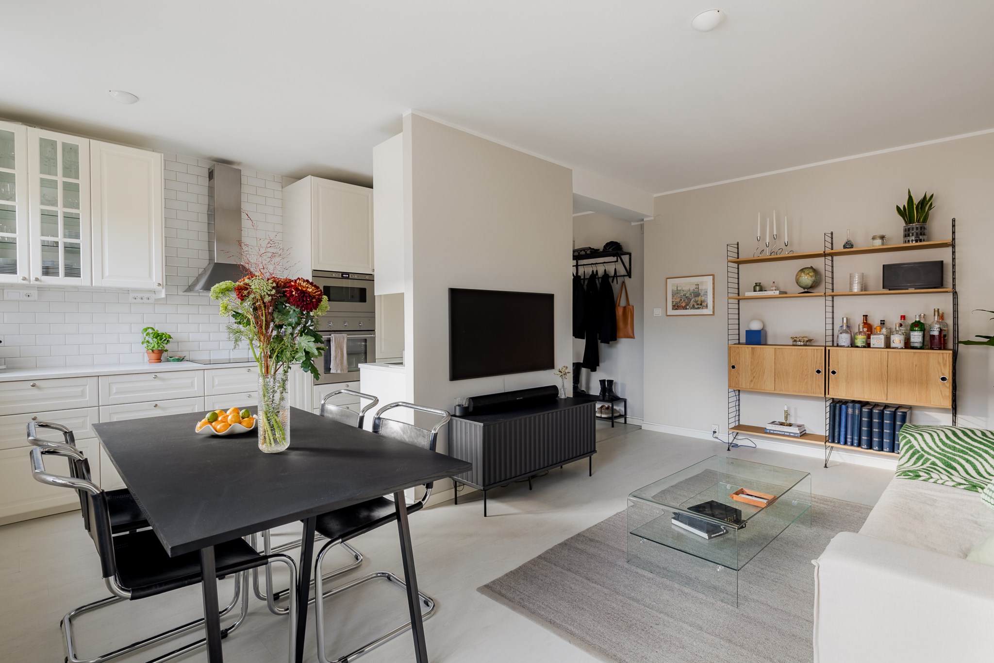 Välkommen in i en tvåa som inte bara är ett hem – den är en känsla. Här möts du av en harmonisk helhet där ljuset flödar genom rummen och där varje yta känns genomtänkt. Redan i hallen märks den omsorg som präglat bostaden: de ljusa materialen, de rena linjerna och den moderna tonen som följer dig genom hela hemmet.