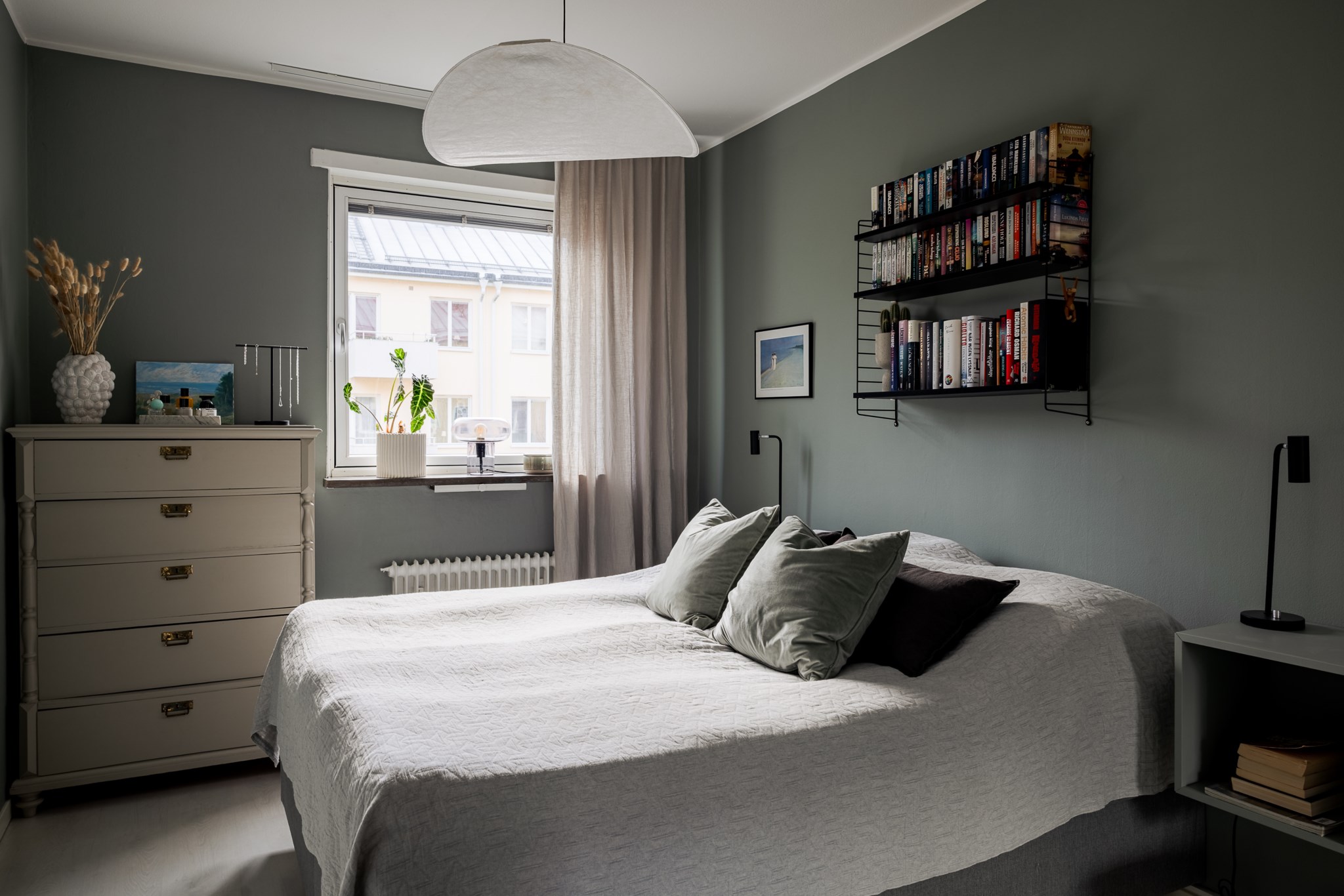 Sovrummet ligger avskilt och rofyllt, perfekt placerat för att ge en lugn start och ett mjukt avslut på dagen. Det är rymligt nog för en ordentlig dubbelsäng och erbjuder förvaring som gör att rummet alltid kan kännas prydligt och harmoniskt. Här inne är det lätt att landa.