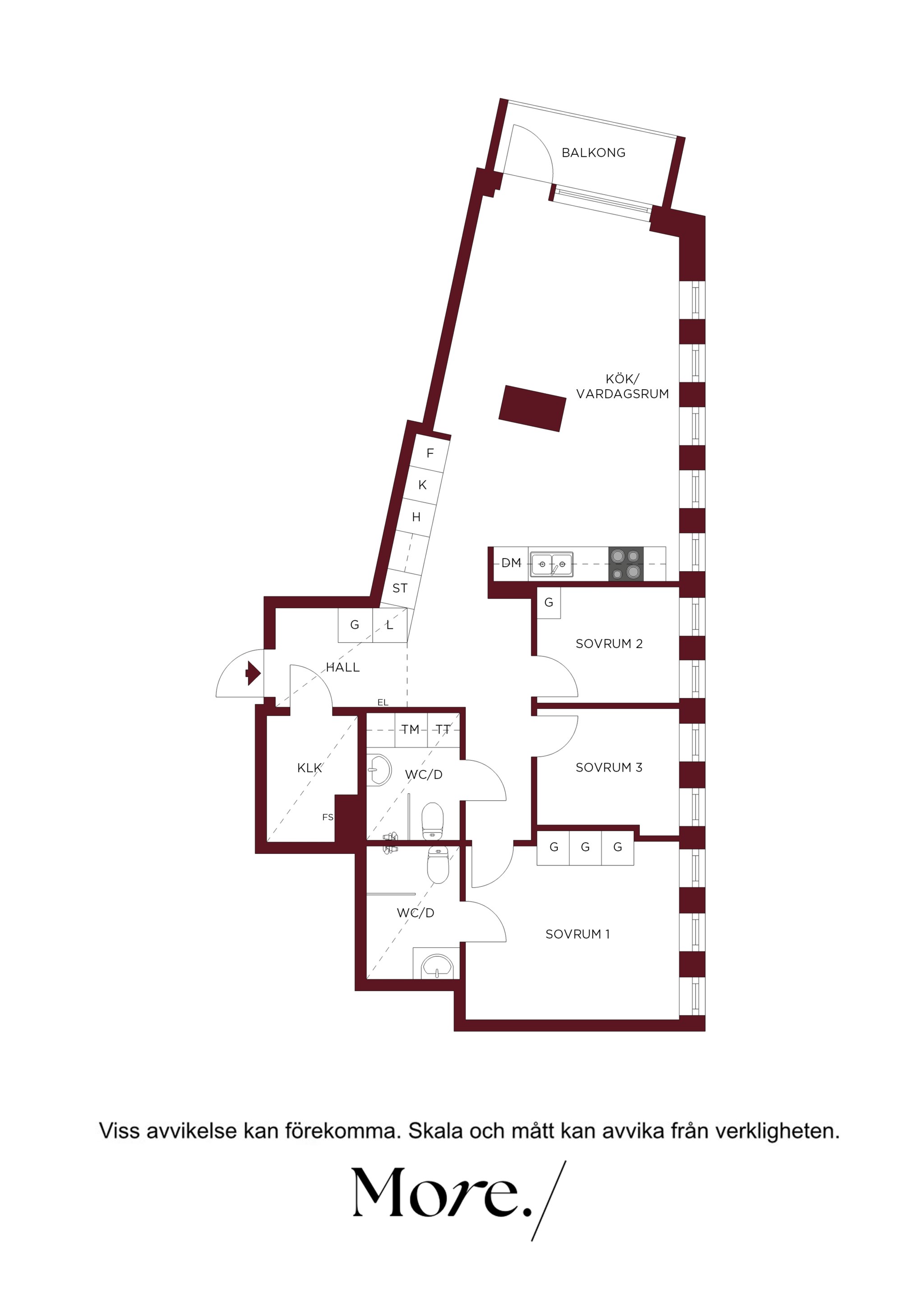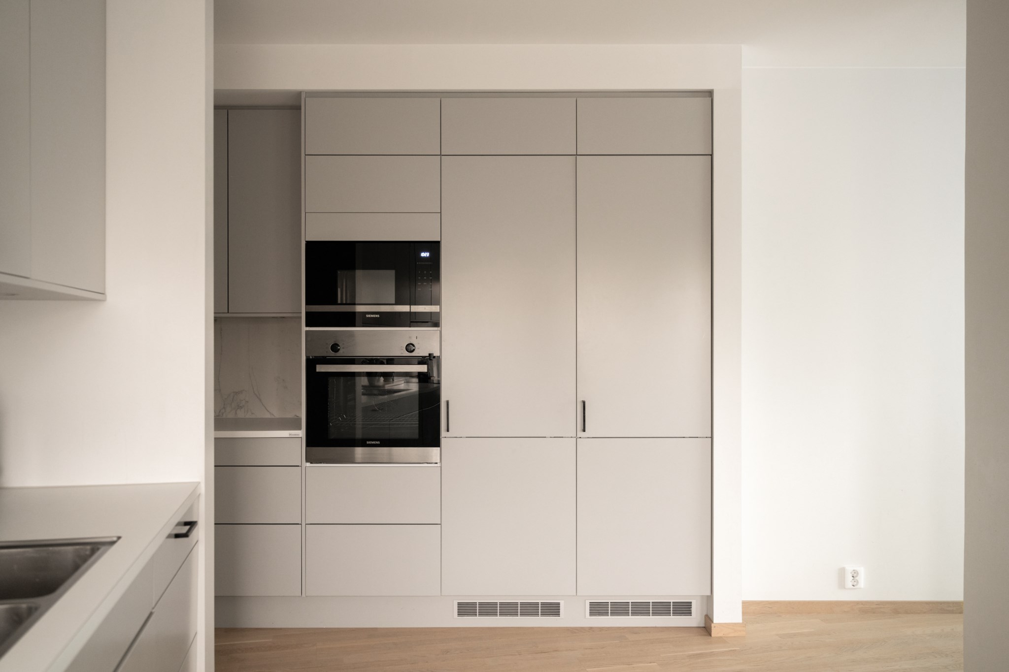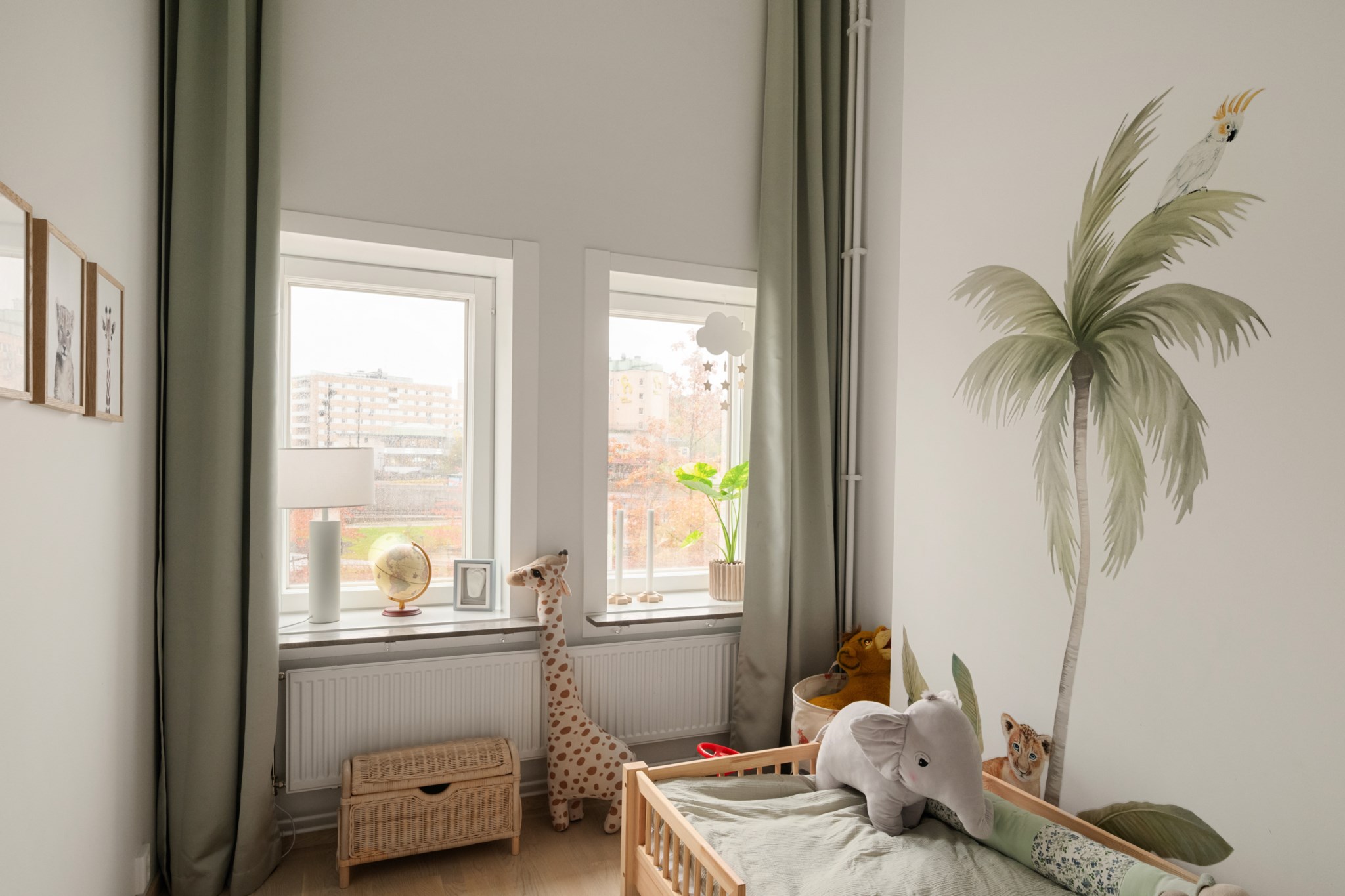 Lägenheten har tre rogivande sovrum, varav master bedroom erbjuder generös förvaring och en lyxig hotellkänsla. De två övriga rummen passar perfekt som barnrum, gästrum eller kontor.