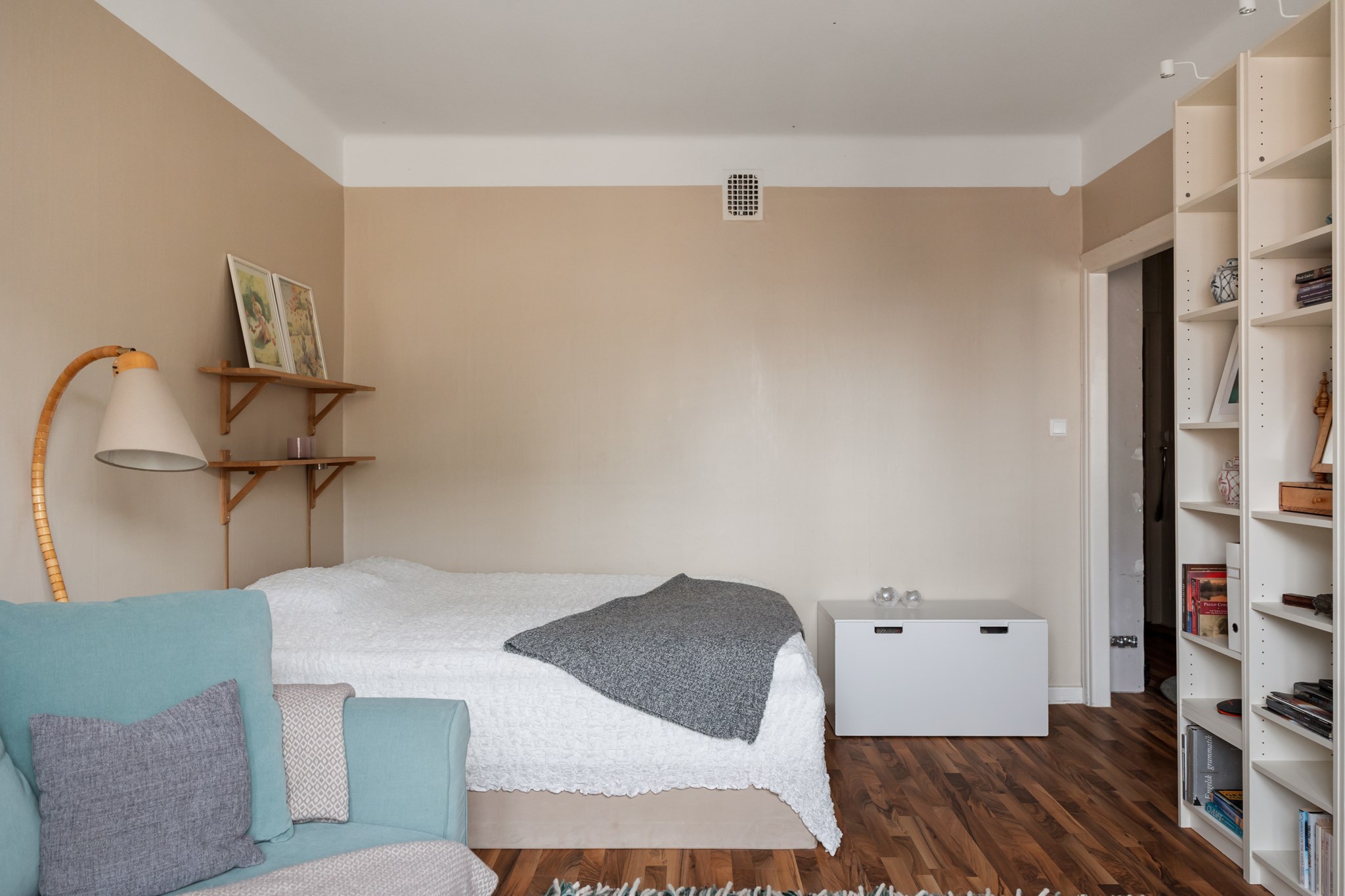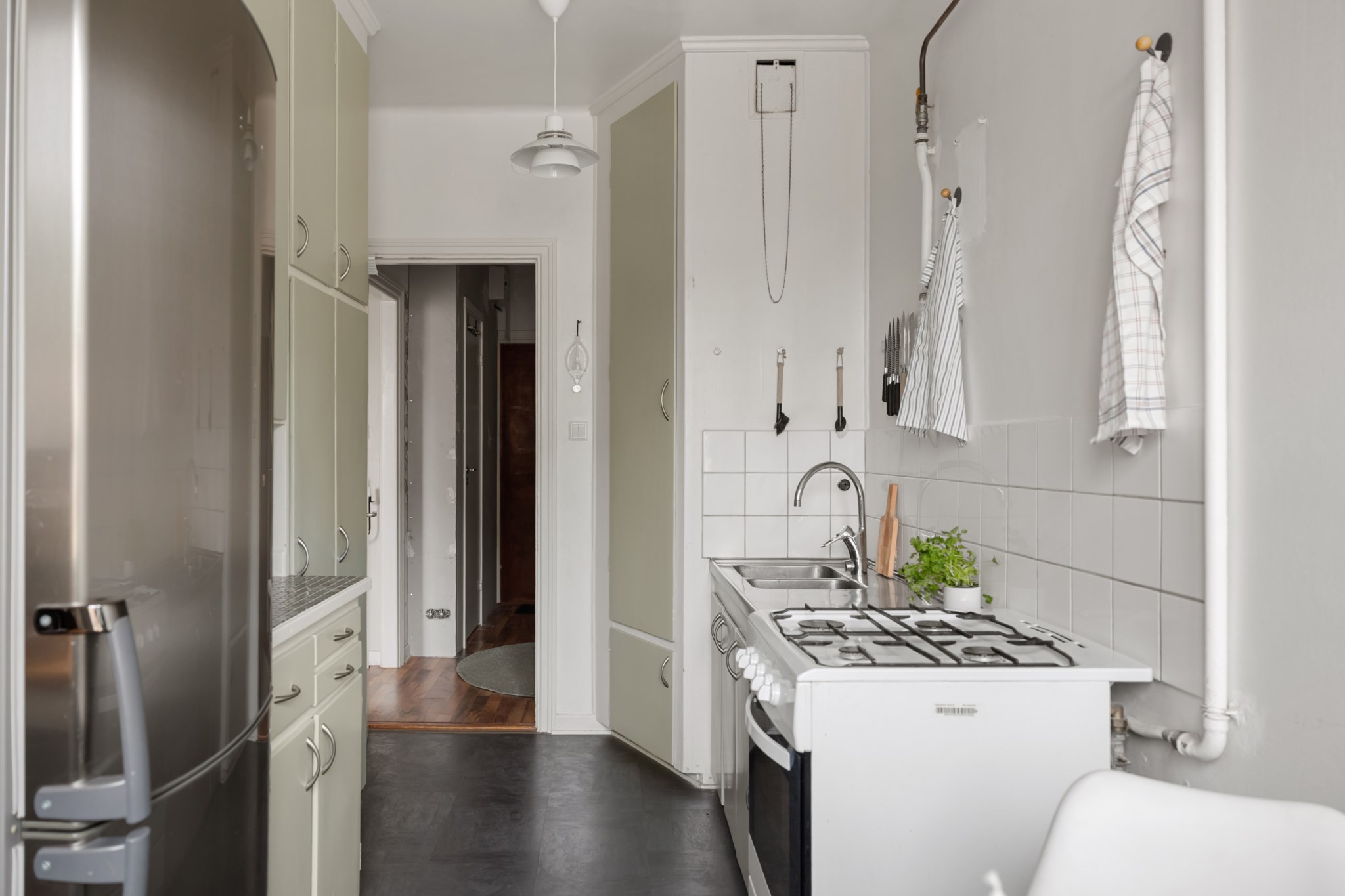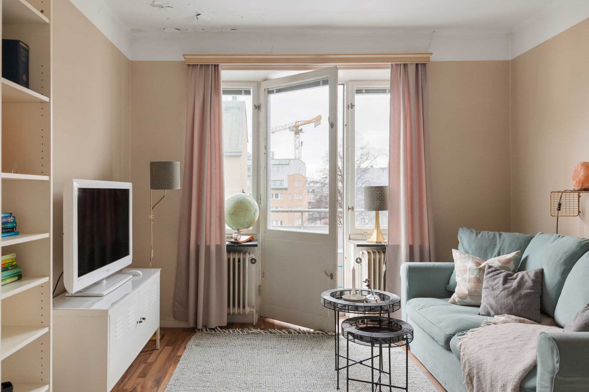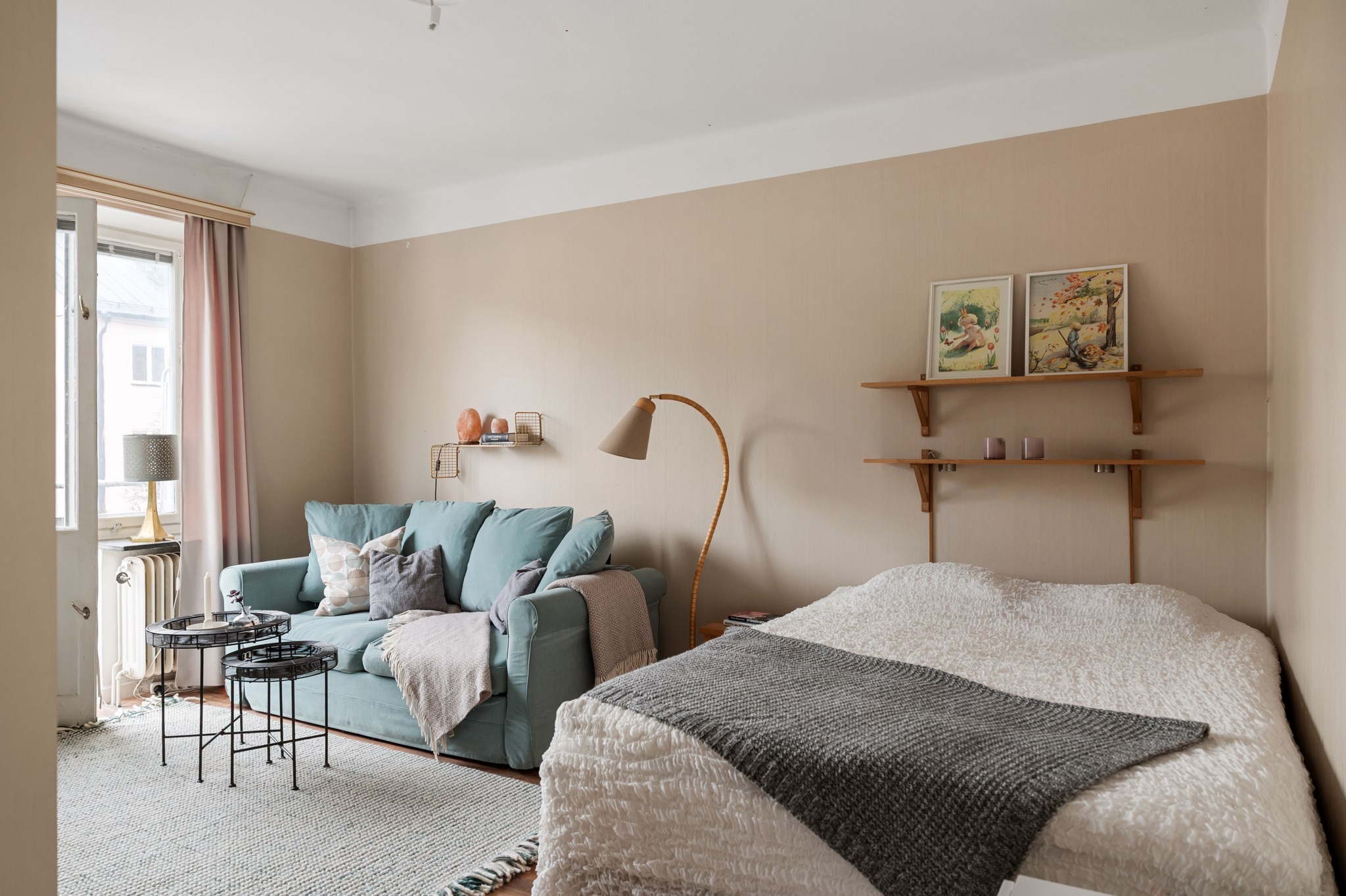 Bostaden ligger högt upp i huset och har balkong – ett perfekt läge för eftermiddagskaffe, odling eller en stunds avkoppling i solen. Lägenheten är genomgående ljus med generösa fönsterpartier som släpper in ordentligt med dagsljus. Planlösningen är smart och effektiv, och köket erbjuder gott om förvaring och arbetsyta. För den som vill finns möjlighet att dela av för att skapa ett separat sovrum.