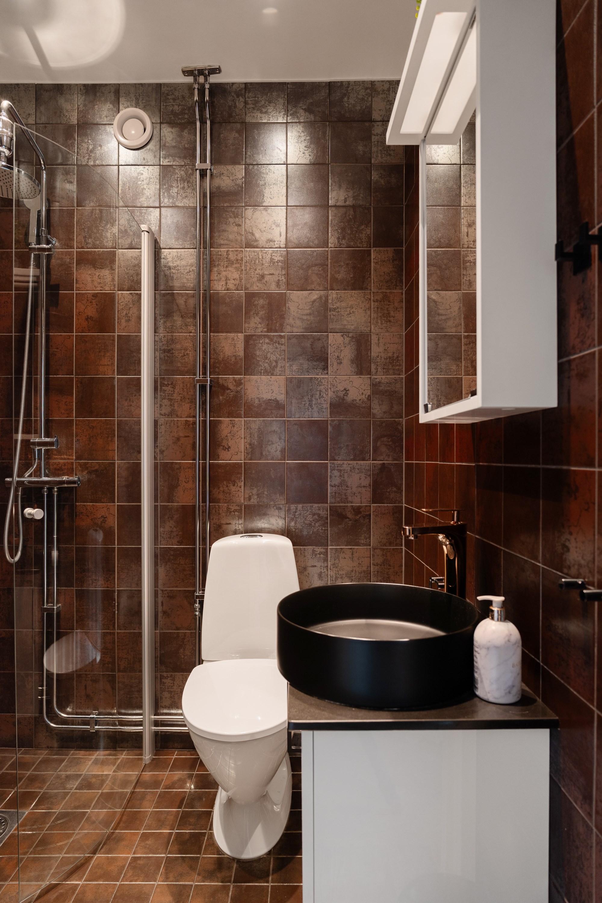 Bostaden är genomgående stilrent renoverad med en tydlig röd tråd. Det smakfullt stambytta badrummet håller hög standard, med moderna materialval och en design som känns lika rätt idag som om tio år. Här finns en självklar känsla av kvalitet – inget är lämnat åt slumpen.