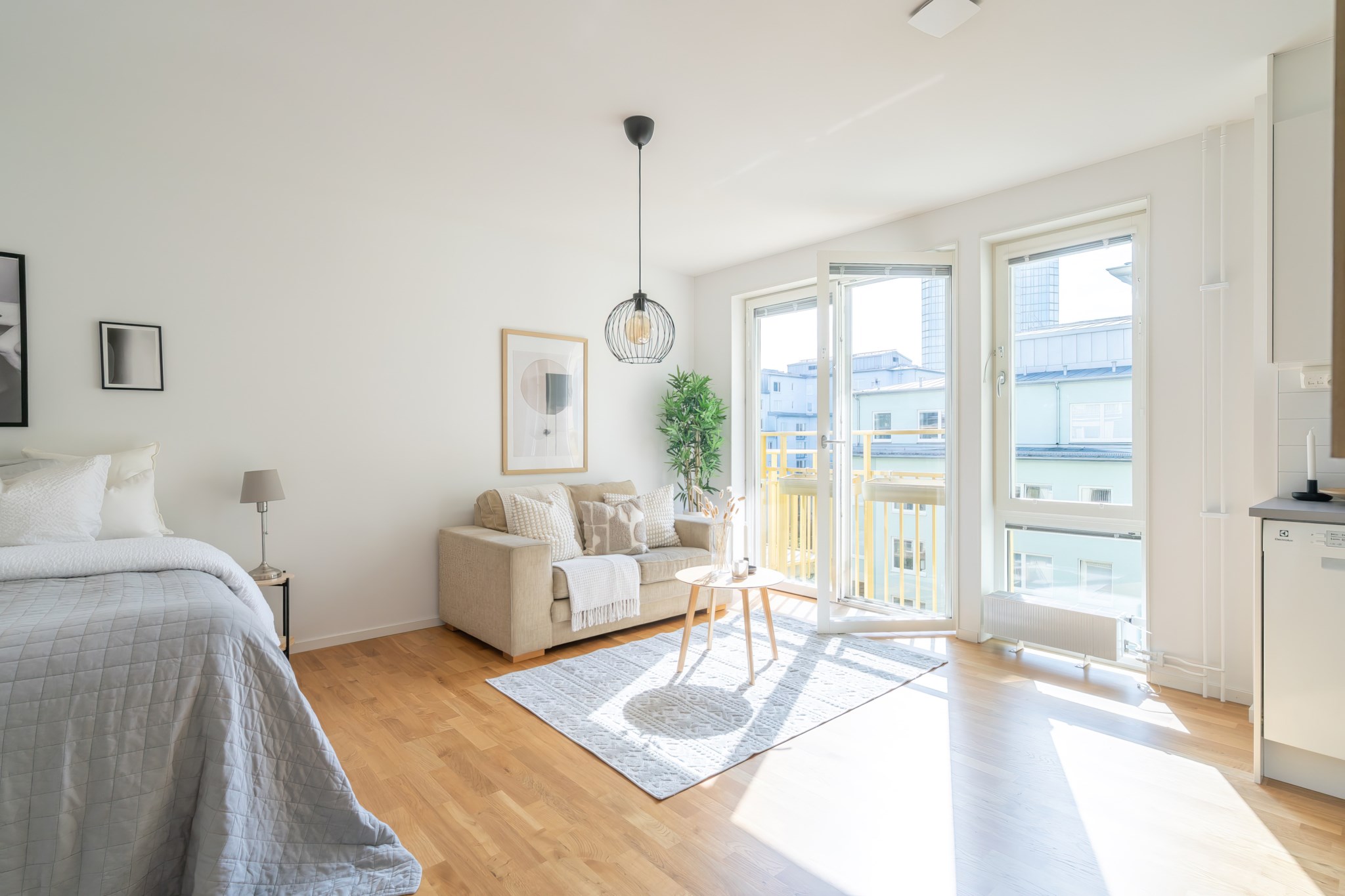Välkomna till Råsundas bästa läge! Här finner du en optimal 1:a i högt läge med utsikt över föreningens trevliga innergård. Lägenheten har en genomgående hög standard och erbjuder en mysig sovalkov som på ett naturligt sätt är avskärmad från vardagsrummet. Från allrummet nås den franska balkongen med stora dubbeldörrar som bjuder in ljuset och skapar en härlig rymd.
