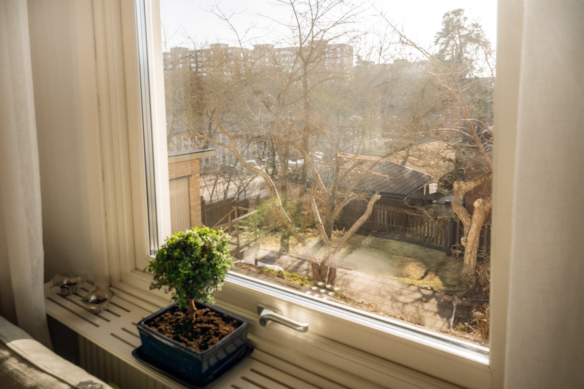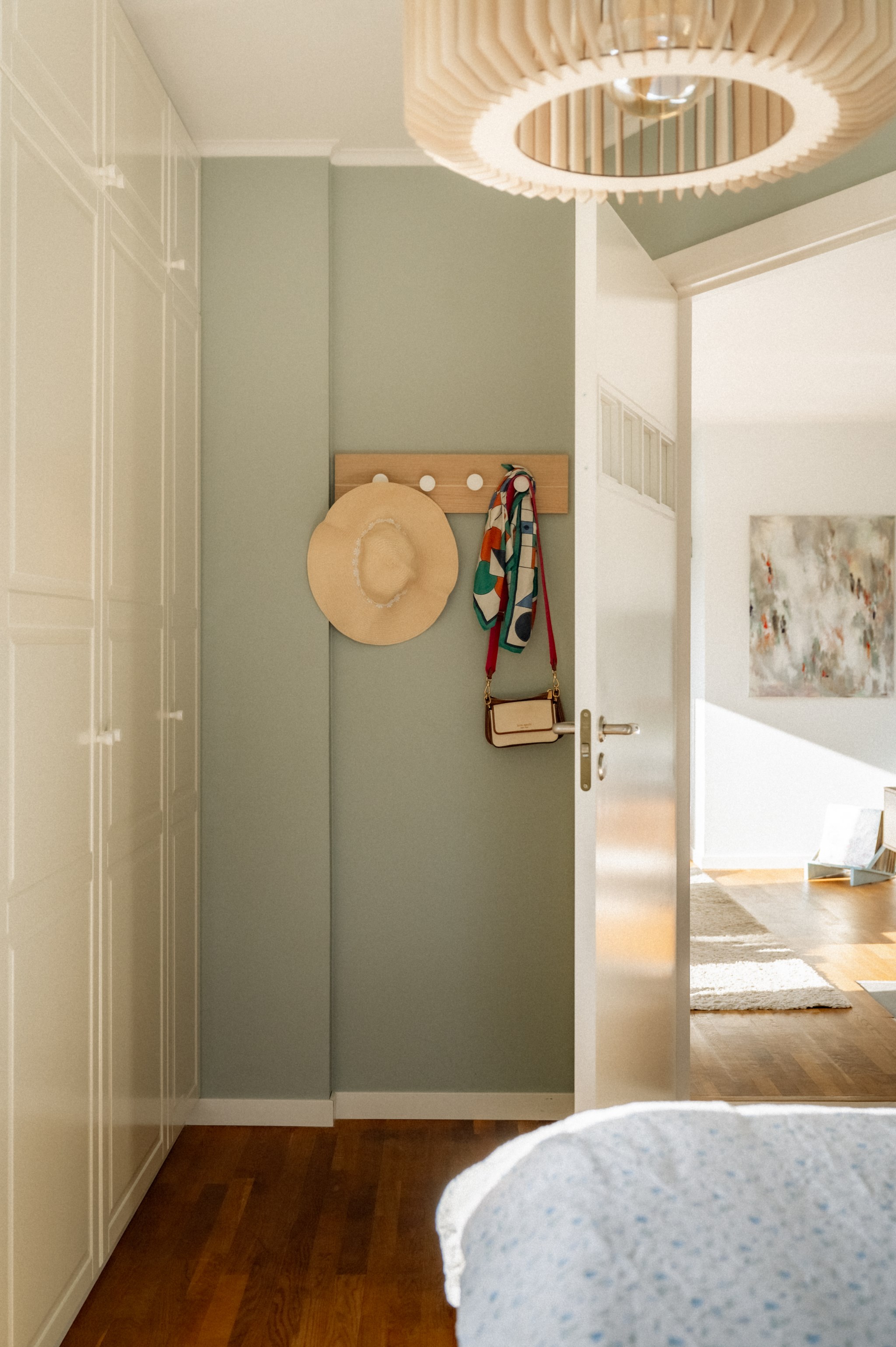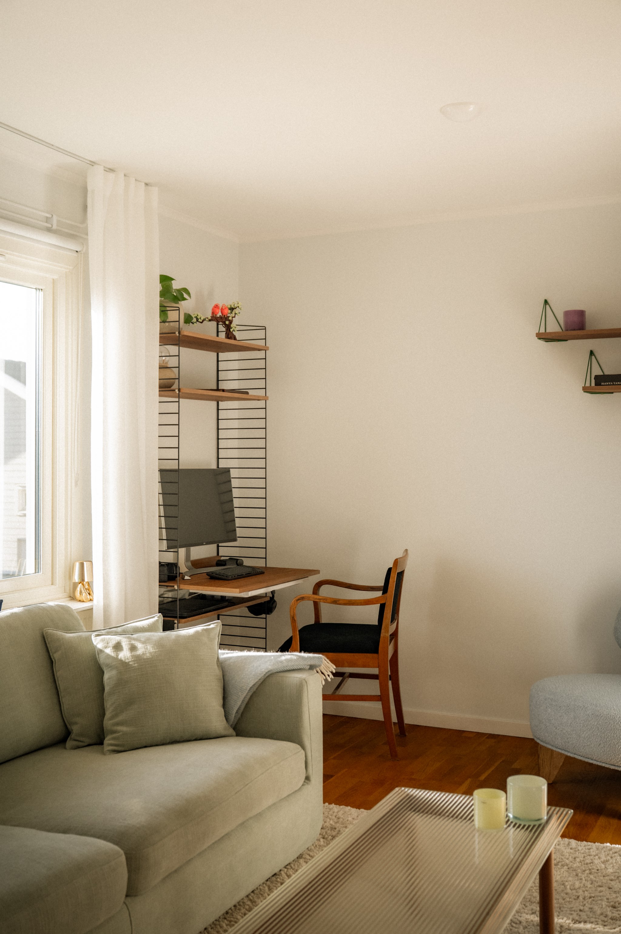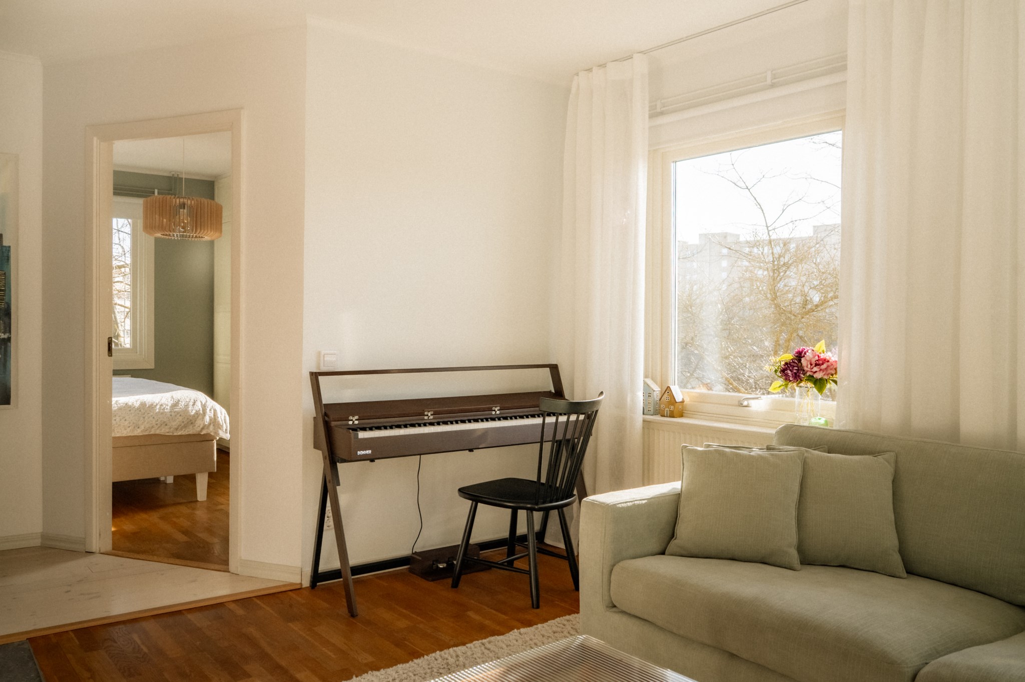Redan när du kliver in genom dörren möts du av ett hem där ljuset får spela huvudrollen. Fönsterpartierna släpper in rikligt med dagsljus som förstärker bostadens lugna färgskala och skapar en trivsam helhet genom hela bostaden.