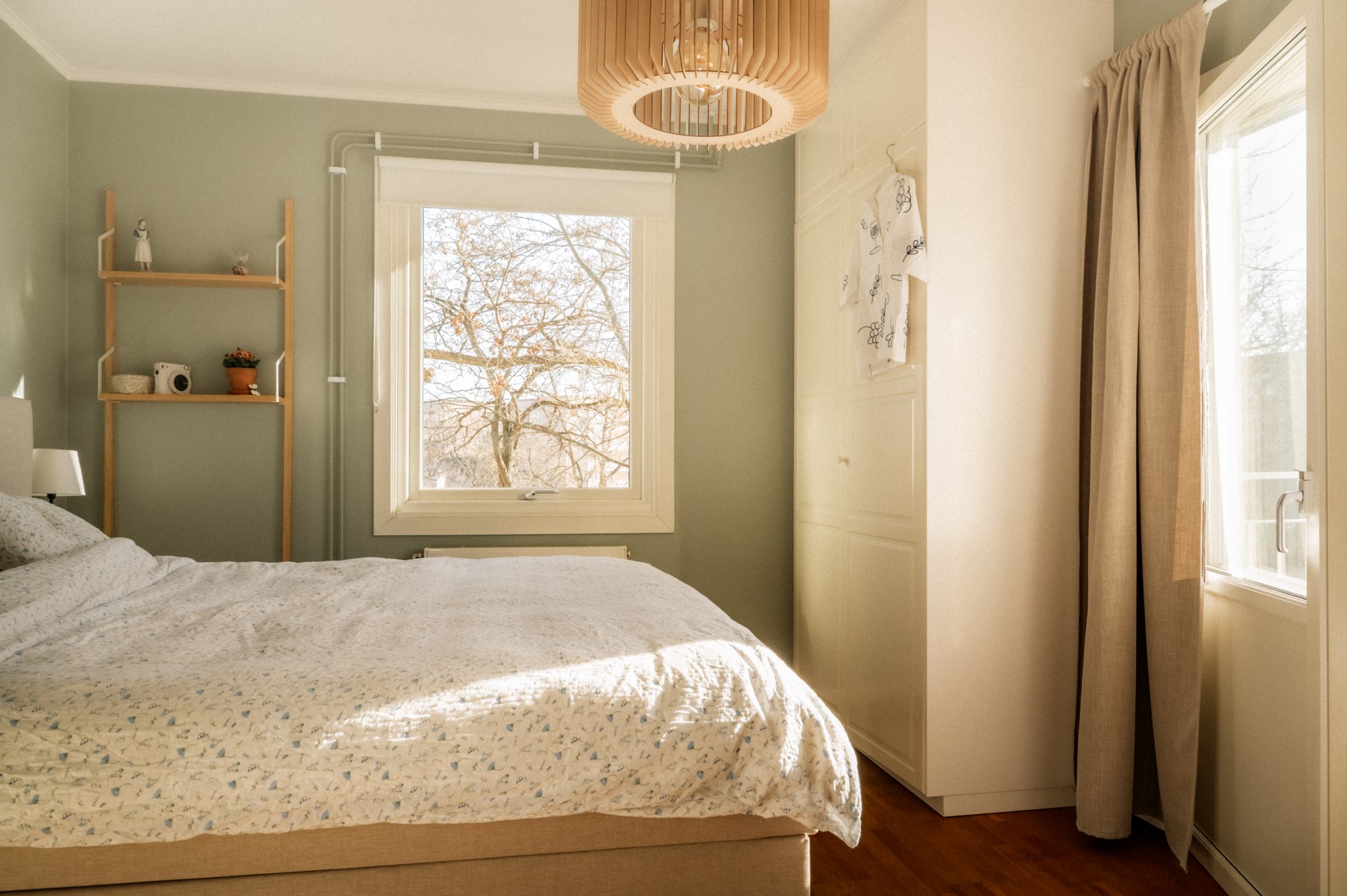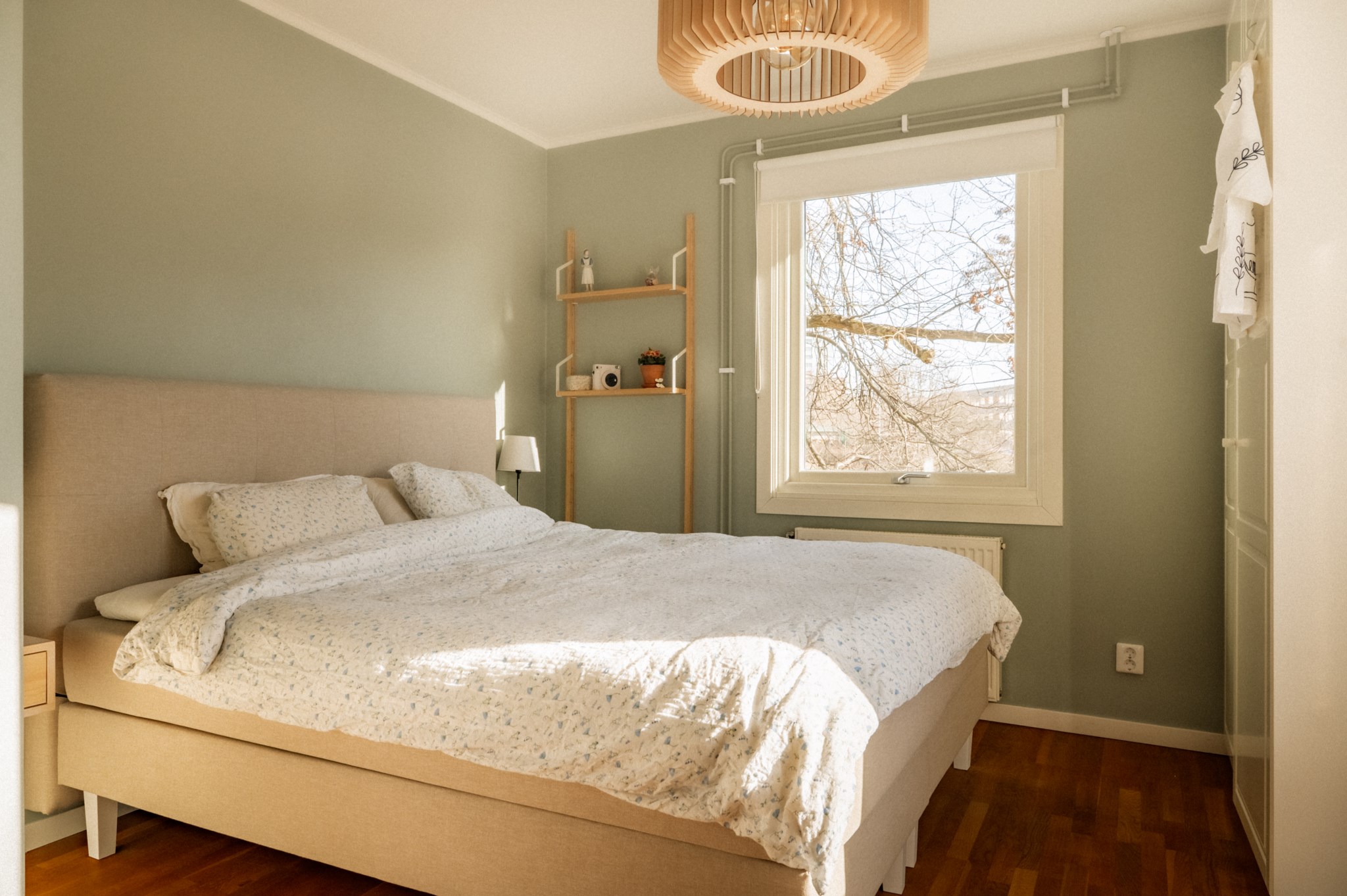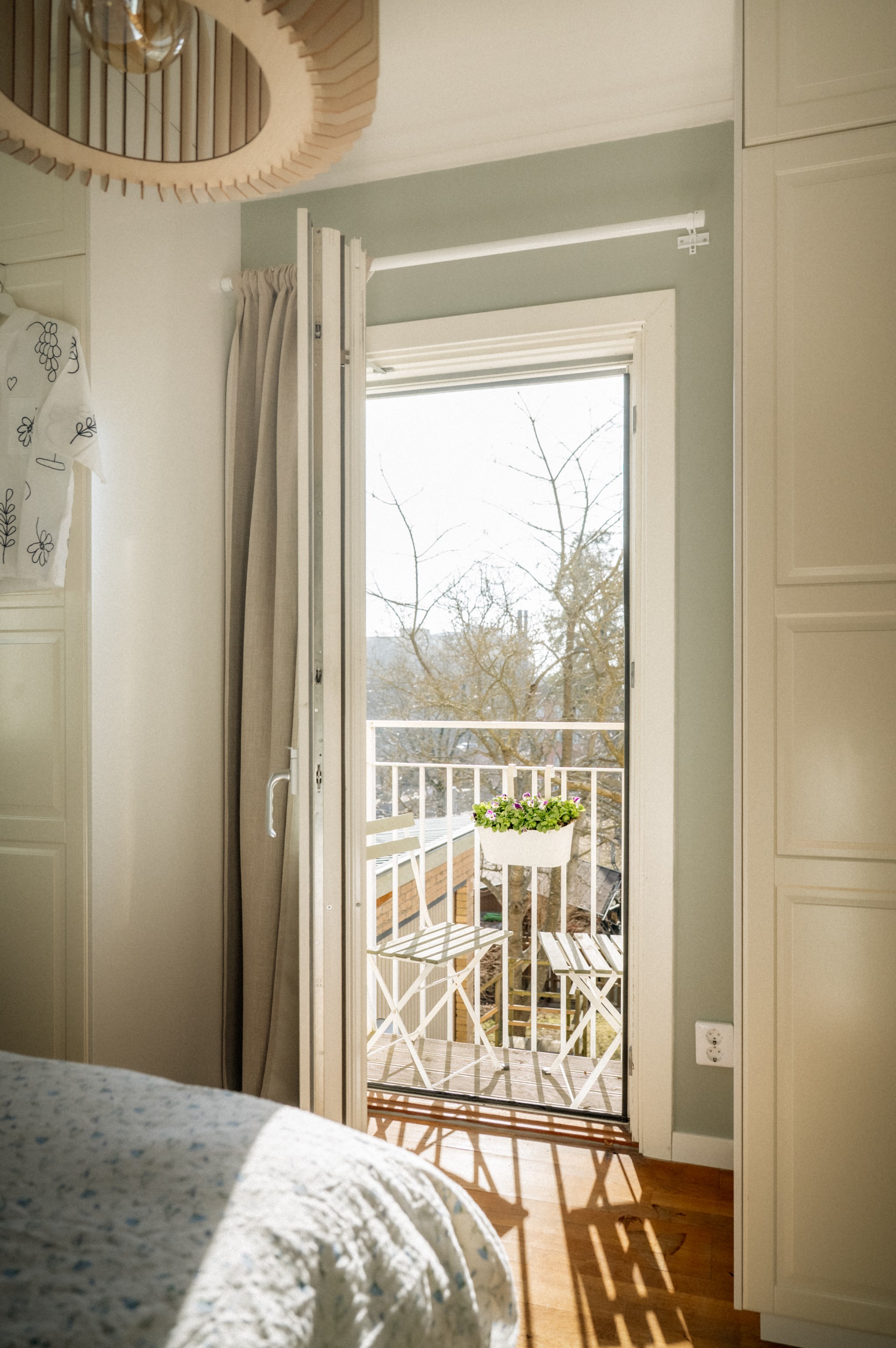 Sovrummet är rogivande och väl tilltaget med plats för dubbelsäng, nattduksbord och ytterligare möblering såsom skrivbord eller byrå. Härifrån nås bostadens balkong, en uppskattad förlängning av hemmet där du kan njuta av morgonkaffet, läsa en bok i solen eller bara ta en stunds paus i vardagen. Utsikten mot gårdens grönska förstärker den lugna atmosfären och gör balkongen till en naturlig plats för återhämtning.