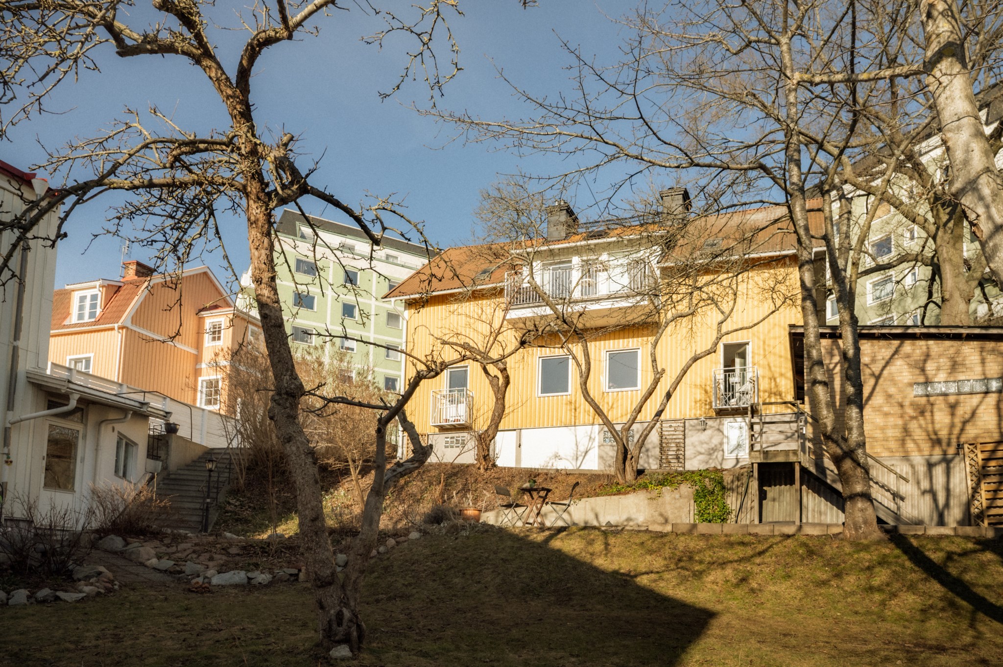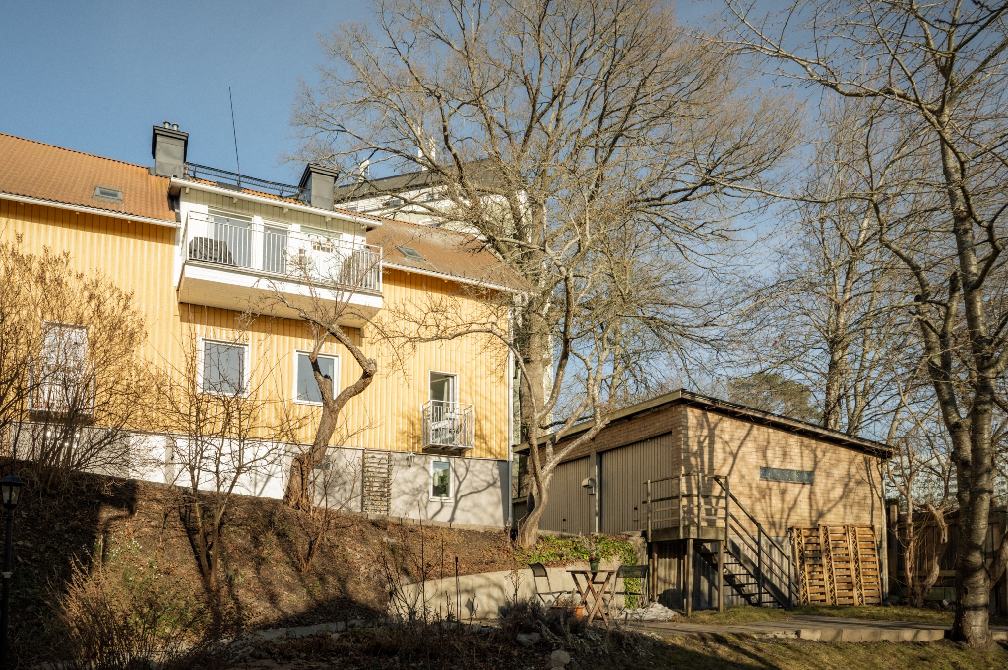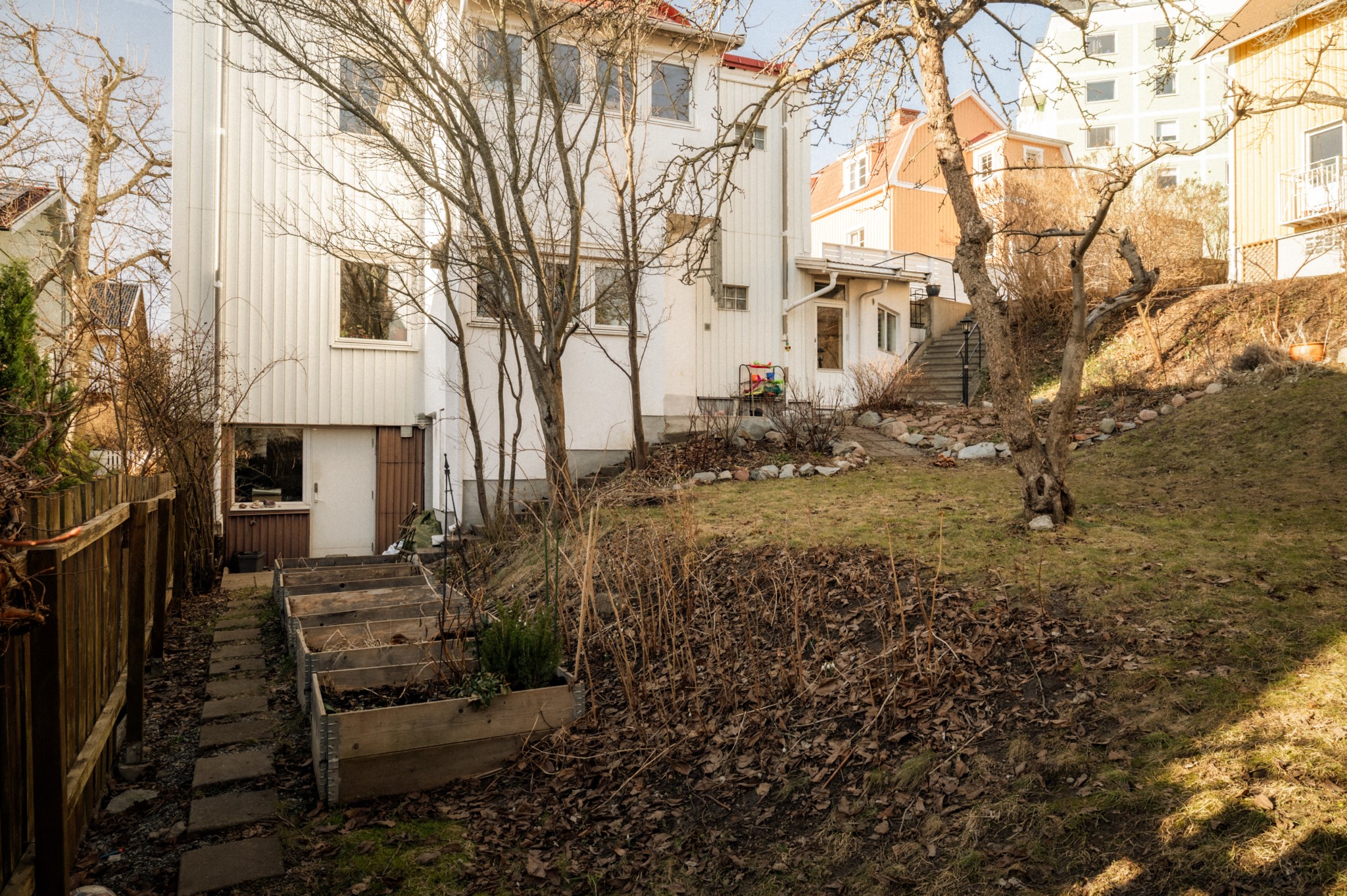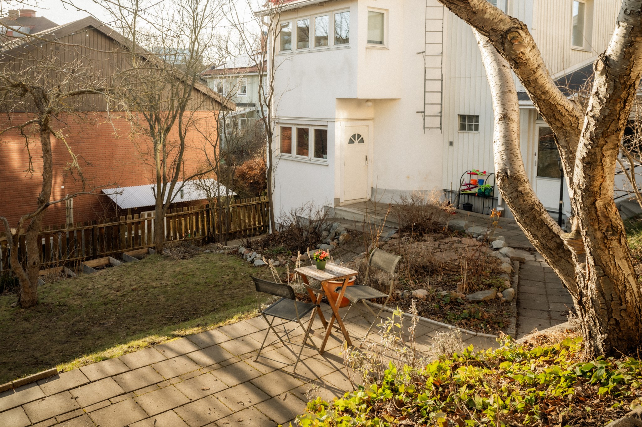 Men bostadens kvaliteter stannar inte vid de egna kvadratmetrarna. Den grönskande innergården är något alldeles extra och förstärker den unika villakänslan ytterligare. Här möts du av en lugn och trivsam miljö med gräsyta, sittplatser och pallkragar för odling där föreningens medlemmar kan plantera örter, grönsaker eller blommor. Under sommarhalvåret blir gården en naturlig samlingsplats för såväl avkoppling som spontana samtal med grannar – en liten oas mitt i staden.